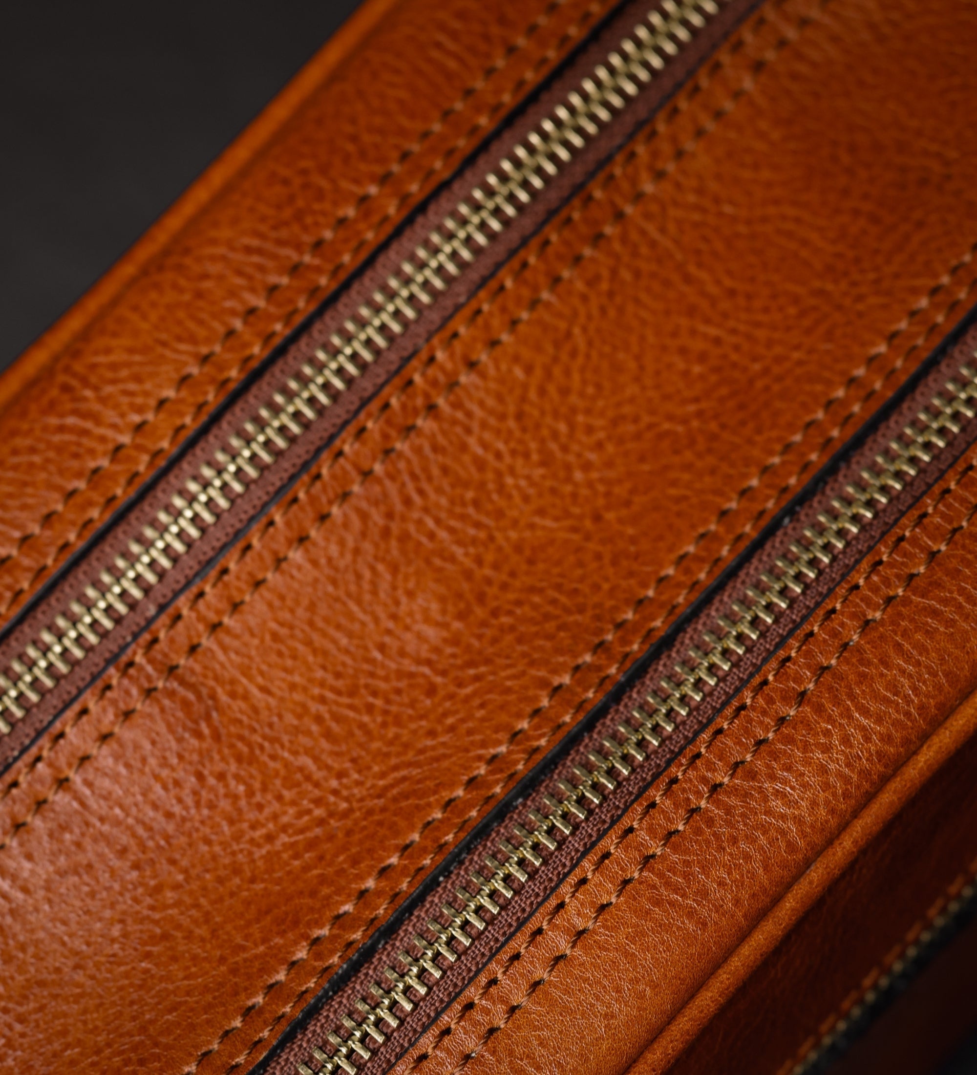 Kolejna doskonale wykonana kosmetyczka dla mężczyzn (i nie tylko). Dwie oddzielne przegródki są wystarczająco pojemne, aby pomieścić wszystko, co jest potrzebne. Dwie wewnętrzne kieszenie pozwalają oddzielić rzeczy od siebie. Prosty i klasyczny design, wygodnie zaprojektowany, aby zaspokoić potrzeby każdego mężczyzny.