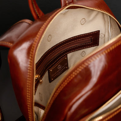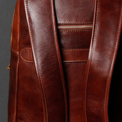 Time Resistance tworzy z włoskiej skóry licowej Vachetta: garbowanej roślinnie i barwionej ręcznie. Z czasem zyskuje szlachetną patynę.