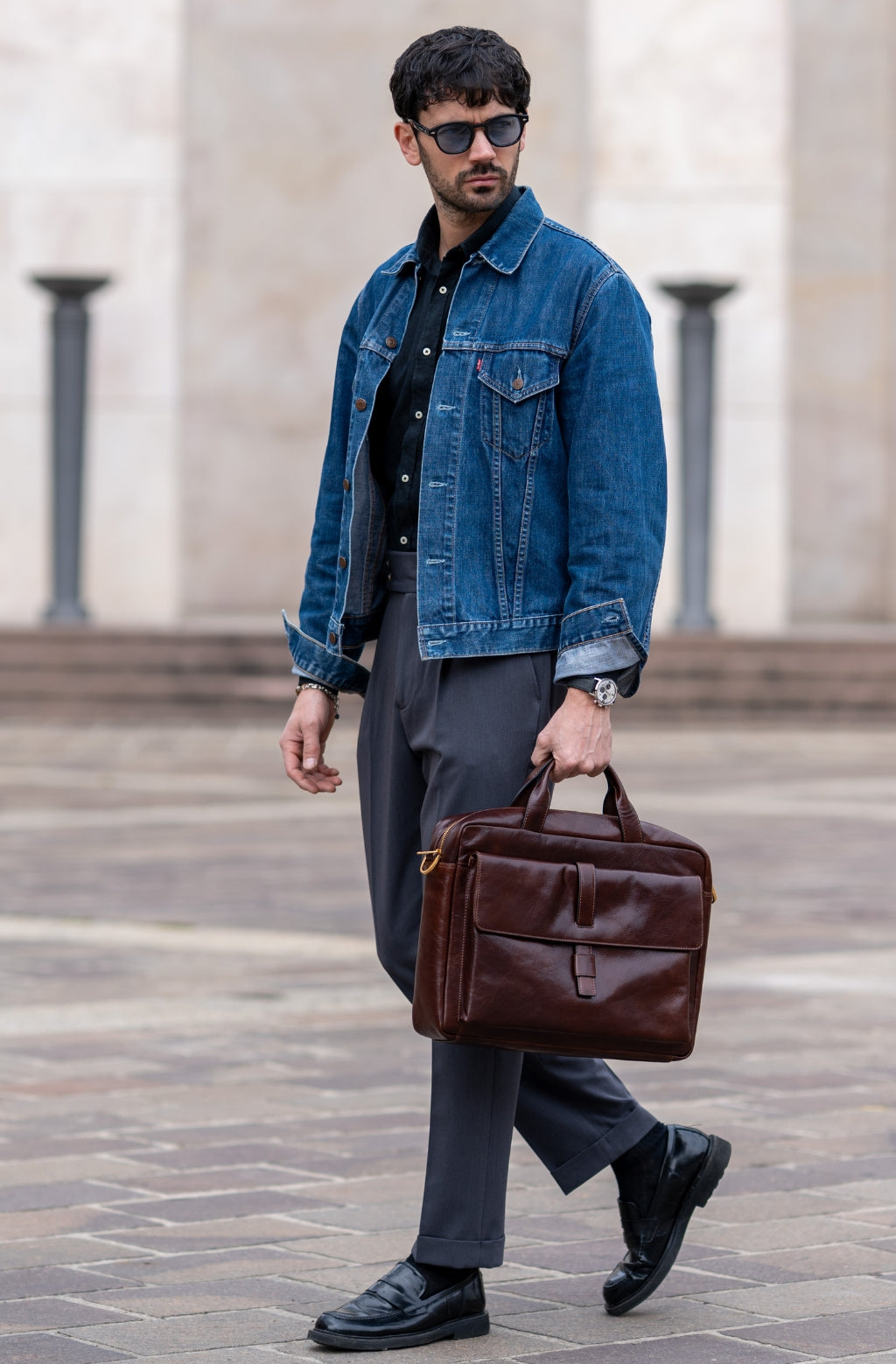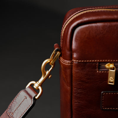 Time Resistance tworzy z włoskiej skóry licowej Vachetta: garbowanej roślinnie i barwionej ręcznie. Z czasem zyskuje szlachetną patynę.