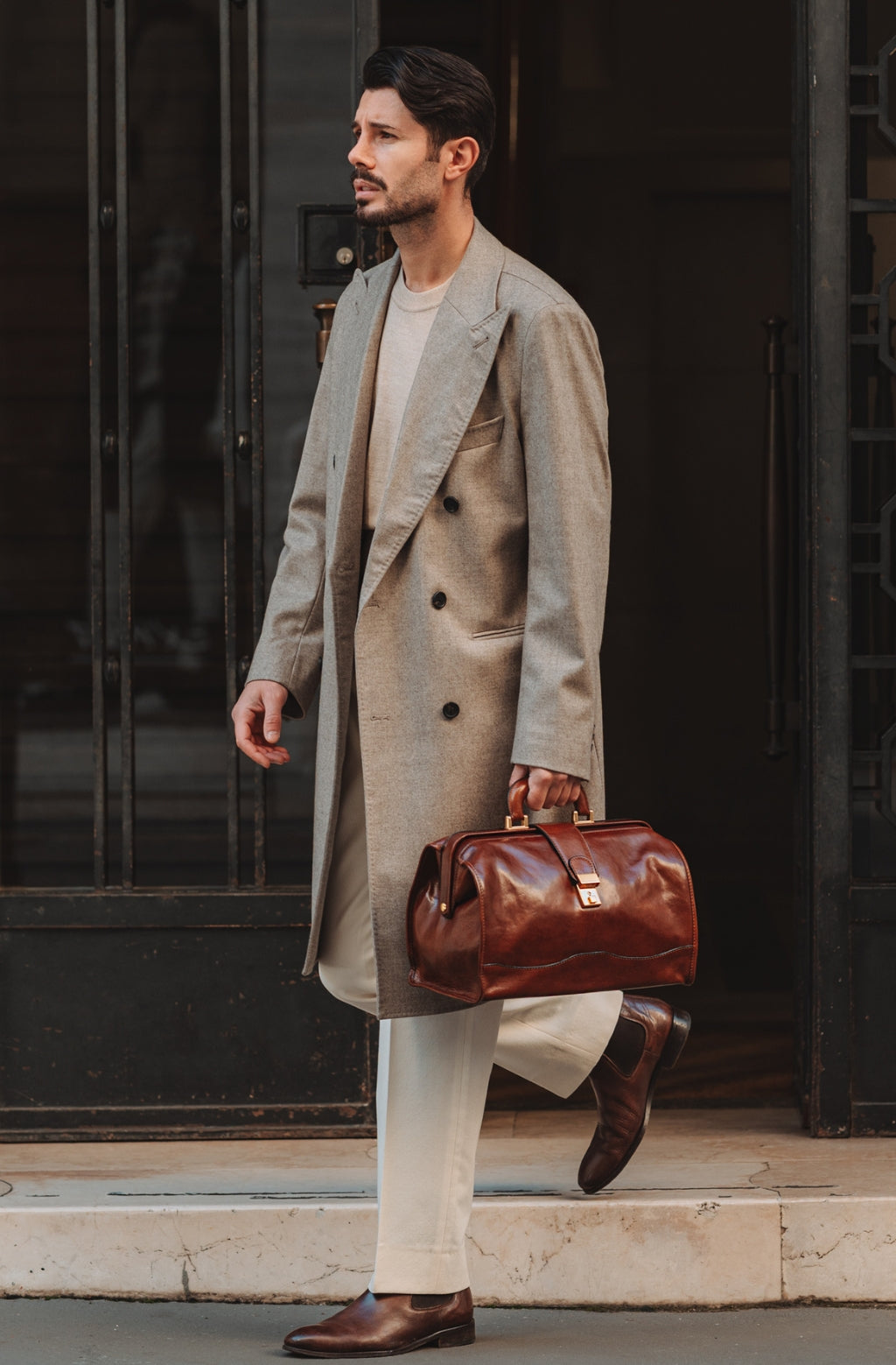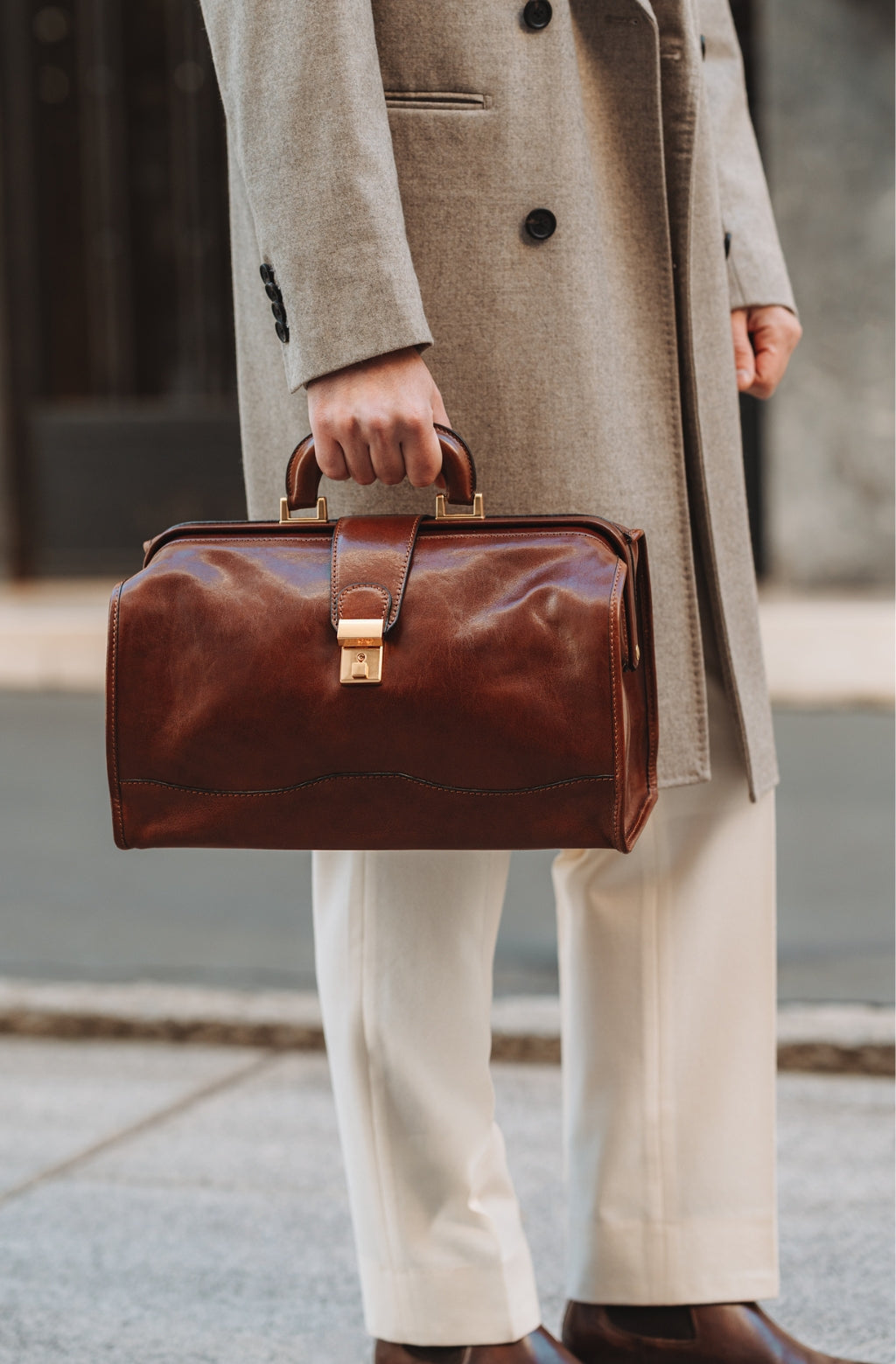Skórzana torba lekarska to ponadczasowa klasyka, ale w tej mniejszej wersji jej silny charakter został zastąpiony urokiem. Chociaż bez wątpienia jest to przemyślany prezent dla lekarza lub studenta medycyny, jeszcze lepiej sprawdzi się w domu jako wyrazisty dodatek. Dla mężczyzny, który chce nadać charakteru swojemu wyglądowi, zachowując jednocześnie klasykę, ta torba zabierze w dobrym stylu z biura do salonu cygarowego, a następnie na Brick Lane. Właśnie to, czego potrzeba, aby dodać odrobinę tajemniczości.