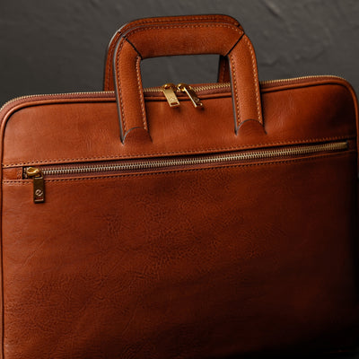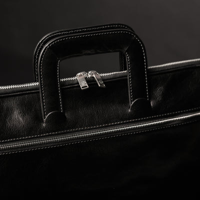 Teczka z pełnoziarnistej skóry licowej, która wyraża idealną harmonię między twardością a miękkością. Najwyższej jakości ręcznie barwiona skóra nadaje jej sentymentalny charakter, a linie nadają jej lekki, nowoczesny wygląd. Ponadczasowa i aktualna. Męska i kobieca. Miejska praktyczność z charyzmą.