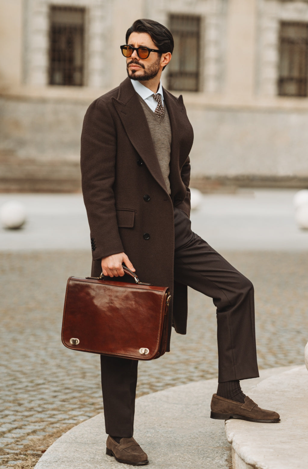 Formalna, a jednocześnie poetycka. Skórzana teczka, która stanowi pomost między dwoma światami – może dodać artystycznego charakteru strojom biznesowym lub nadać formalny wygląd casualowym stylizacjom. Dla kogoś, kto porusza się między światem kreatywnym a korporacyjnym. Teczkę należy połączyć z duchem reinwencji.