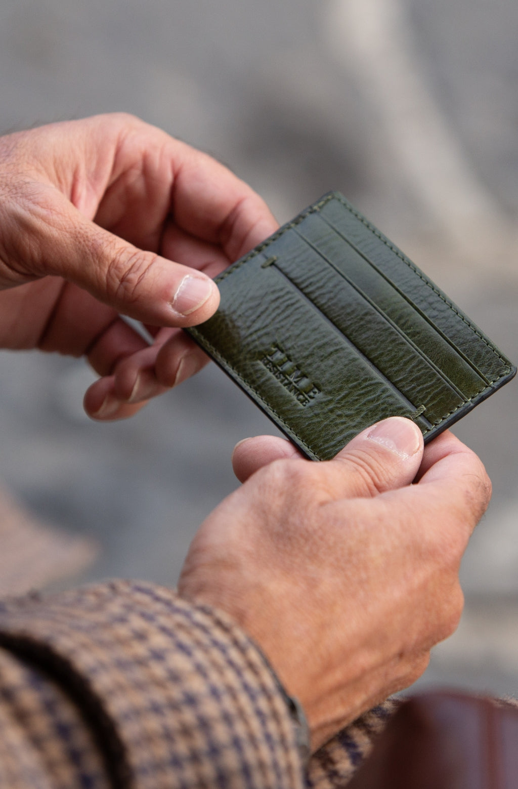 tiene buenos acabados y el color verde es precioso, el cuero se nota de alta calidad. Al principio estaba bastante rígido y costaba meter y sacar tarjetas pero con el uso se ha ido adaptando a la forma de las tarjetas. Por ahora todo bien