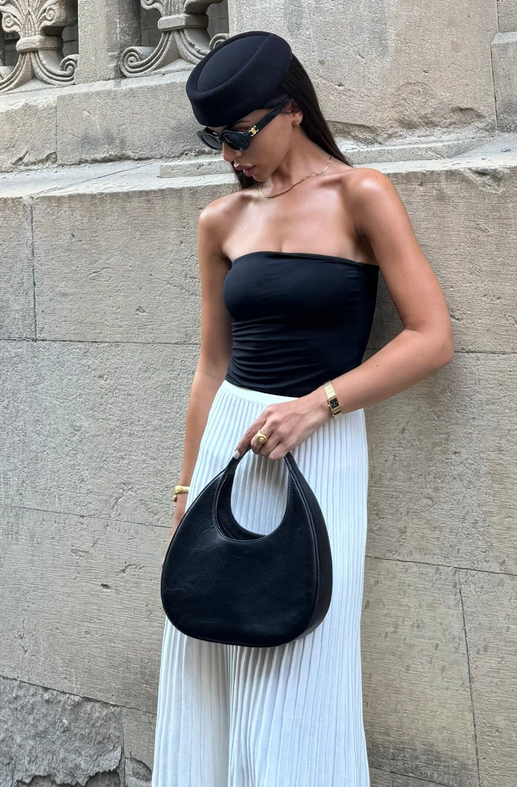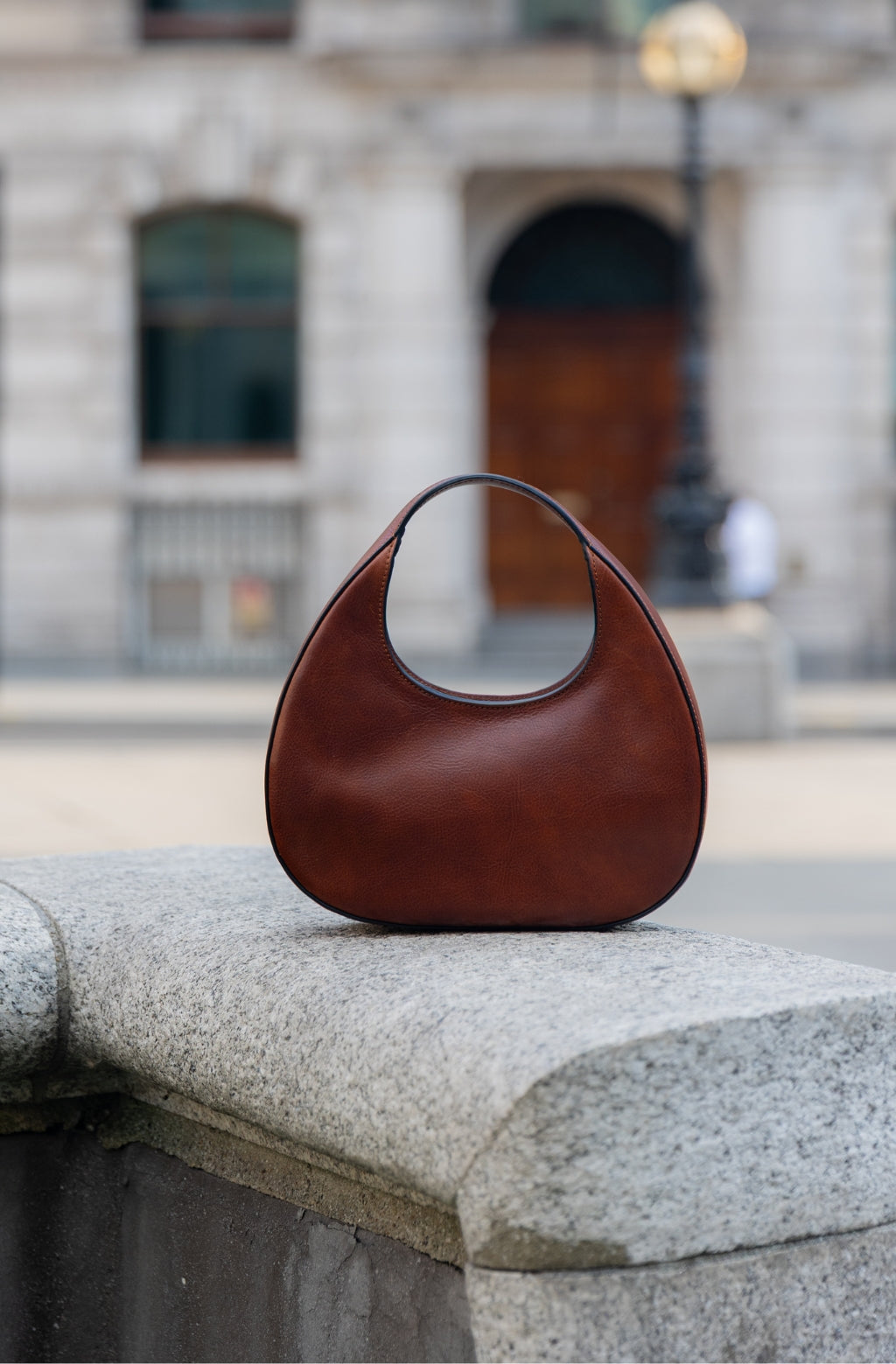 Przedstawiamy skórzaną torebkę „The Moonstone”, inspirowaną niebem, która oddaje esencję ponadczasowej elegancji. Precyzyjnie wykonana, jej mały, zaokrąglony kształt przywołuje na myśl spokojne piękno, a okrągły uchwyt dodaje jej wdzięku. Zaprojektowana tak, aby można ją było nosić pod ramieniem dzięki kompaktowym rozmiarom, emanuje aurą niewymuszonej elegancji. Zamknięcie na zamek błyskawiczny zapewnia bezpieczeństwo Państwa rzeczy, a elegancki, minimalistyczny design świadczy o wyrafinowanym guście. Ozdobiona logo Time Resistance na uchwycie, jest symbolem wysokiej jakości wykonania i ponadczasowego stylu. Rozjaśnij swoją stylizację torebką „The” Handbag – ucieleśnieniem niebiańskiego uroku i subtelnego wyrafinowania.