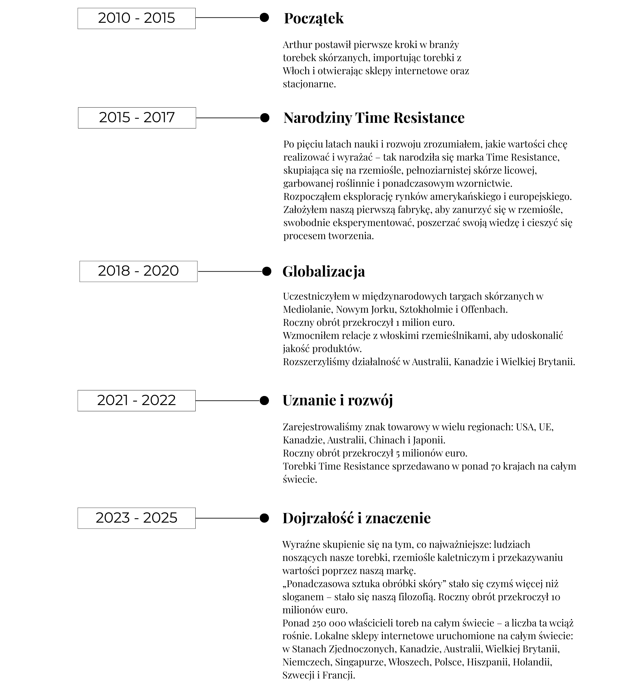 „Są momenty, w których tęsknię za czasami, których nigdy nie przeżyłem – kiedy rzeczy były prawdziwe. Kiedy ludzie posiadali mniej rzeczy, ale bardziej je kochali. Kiedy jakość była oczekiwaniem, a nie luksusem. Kiedy skóra miała charakter, a nie powłoki. Każdy dzień poświęcam tworzeniu mniejszej liczby lepszych rzeczy – dla tych, którzy przedkładają znaczenie nad nadmiar”.