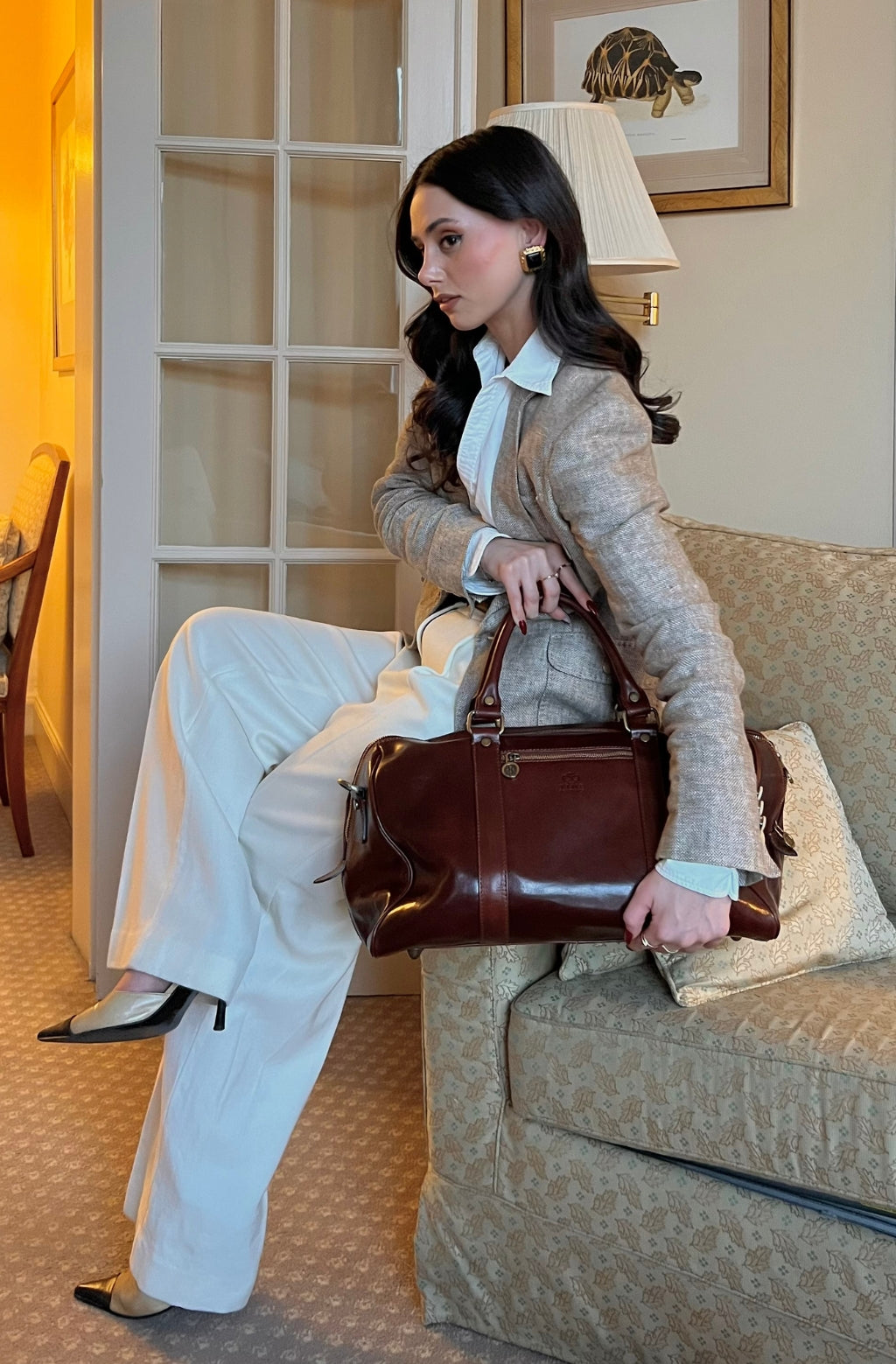 Jest to zdecydowanie nasza ulubiona torba na nocleg, która sprawdzi się również podczas krótkiego wypadu, jeśli są Państwo minimalistami, lub jako torba na co dzień dla maksymalistów (na wypadek, gdyby była konieczna zmiana obuwia). Żywy dowód na to, że skórzana torba podróżna może być najbardziej praktyczną torbą ze wszystkich.