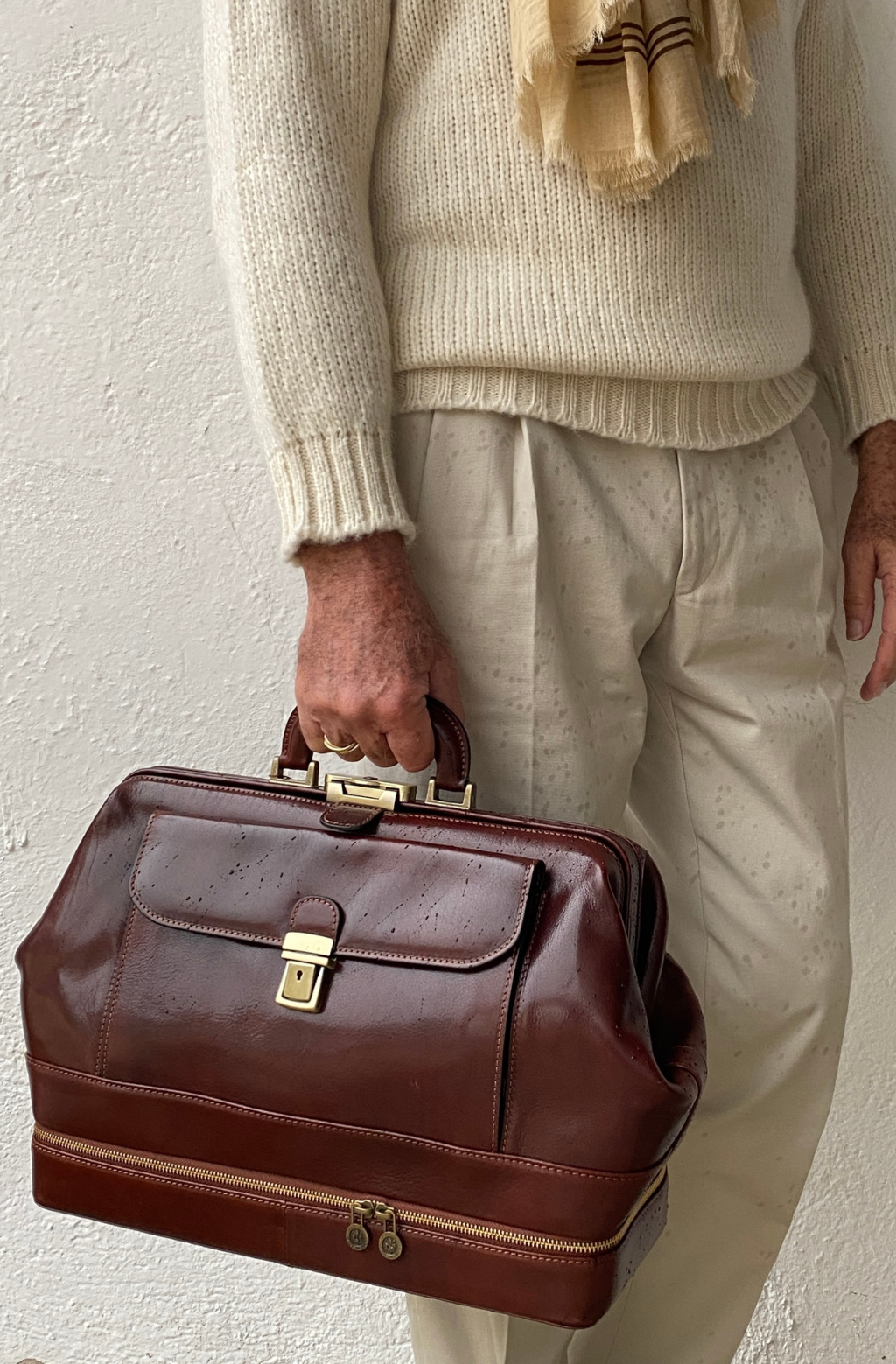 Pochodząca z XIX wieku skórzana, brązowa torba lekarska jest ponadczasową klasyką i jednocześnie wyróżniającym się elementem. Przemyślany prezent dla lekarza lub studenta medycyny, ale także super stylowy dodatek dla osób, które chcą wyróżnić się bez poświęcania na to zbyt wiele czasu i wysiłku. Nie trzeba posiadać stetoskopu, aby nosić tę torbę: niech stanie się ona codzienną torbą do biura, można zabrać ją w podróż, pokazać nieco swoją osobowość. Uzupełniona charyzmą.