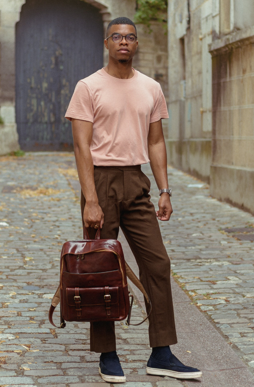 Time Resistance tworzy z włoskiej skóry licowej Vachetta: garbowanej roślinnie i barwionej ręcznie. Z czasem zyskuje szlachetną patynę.