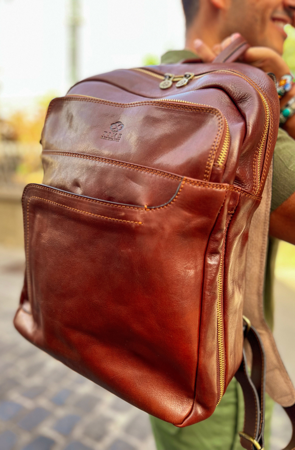Time Resistance tworzy z włoskiej skóry licowej Vachetta: garbowanej roślinnie i barwionej ręcznie. Z czasem zyskuje szlachetną patynę.