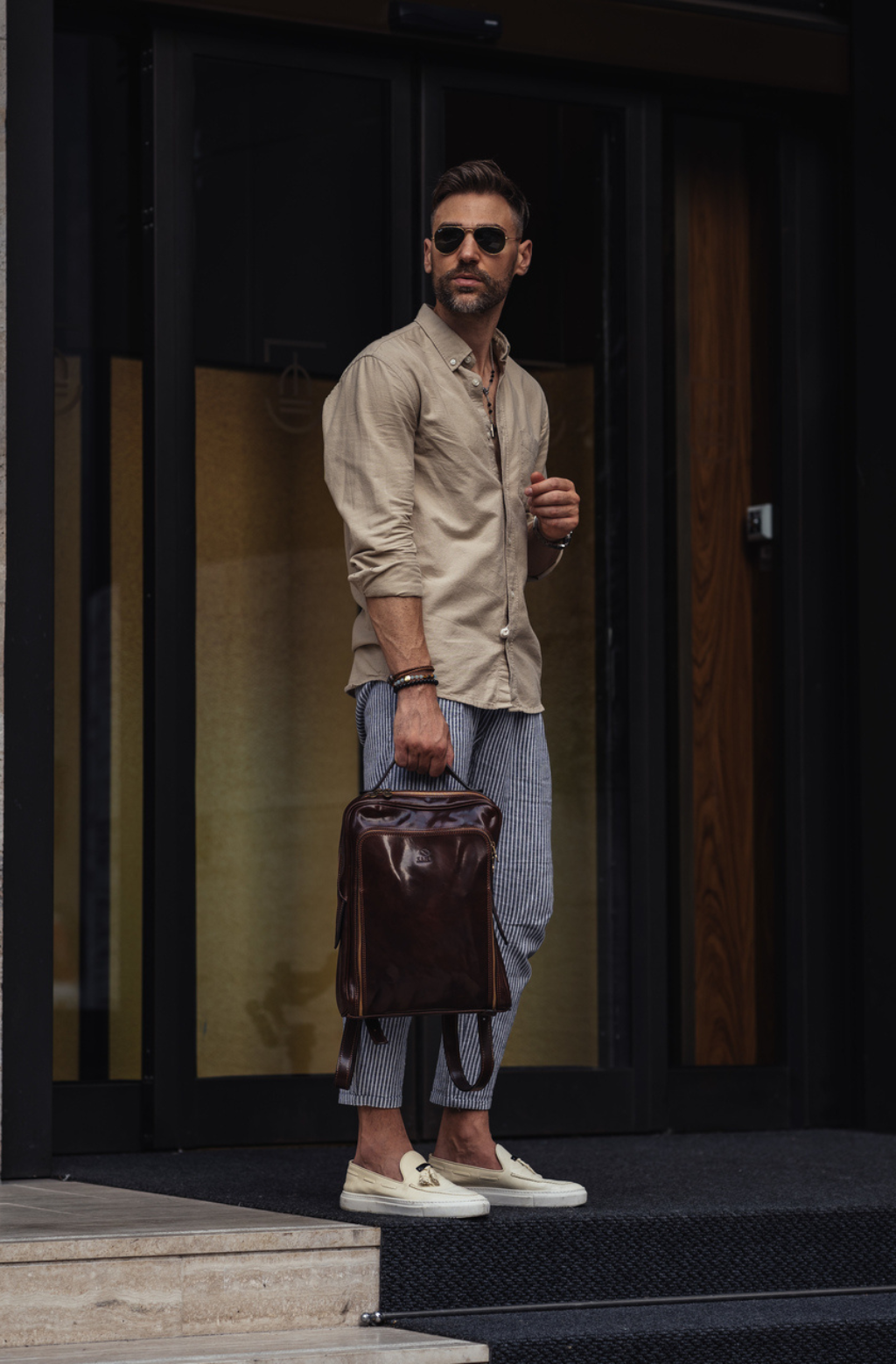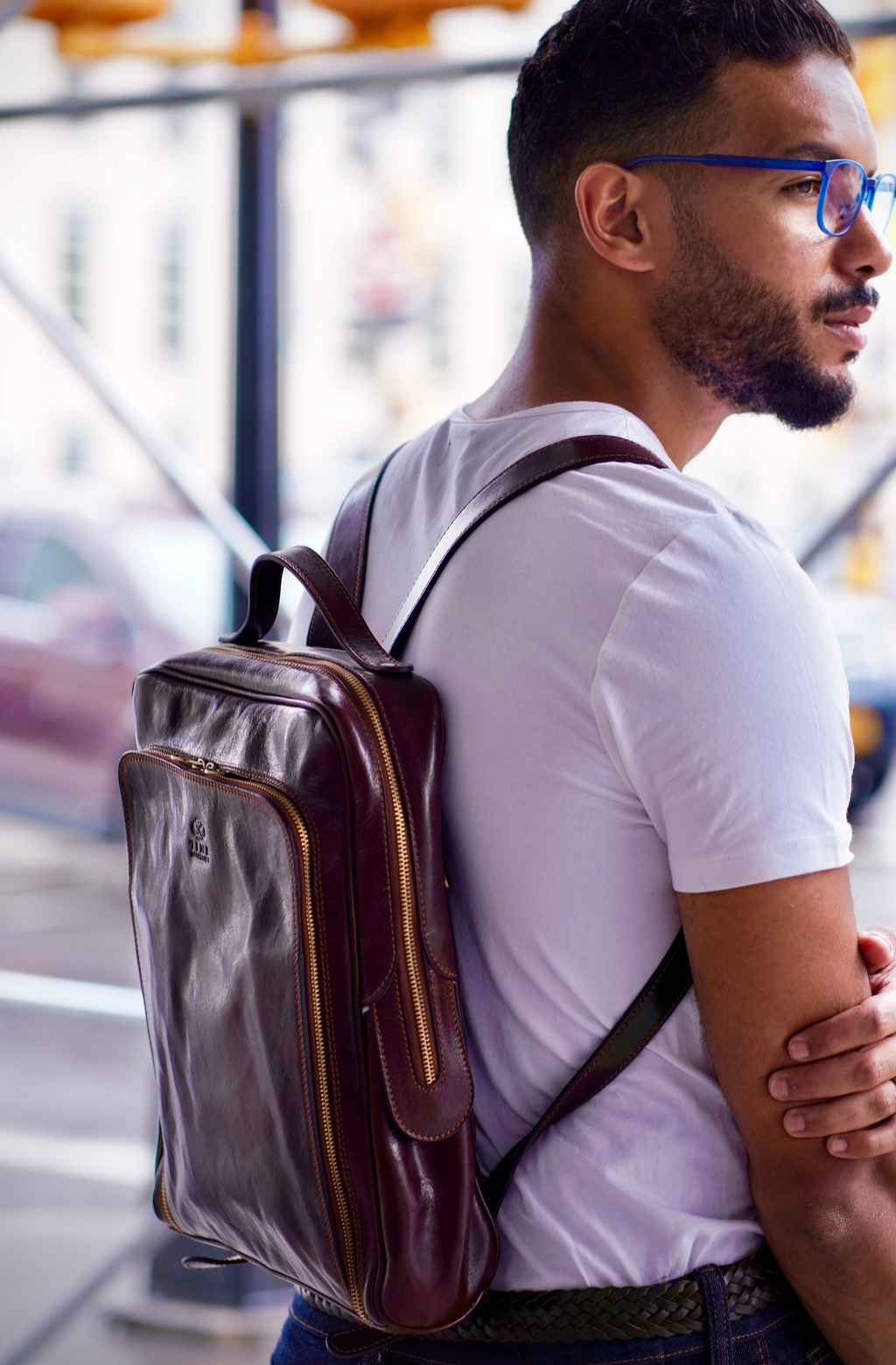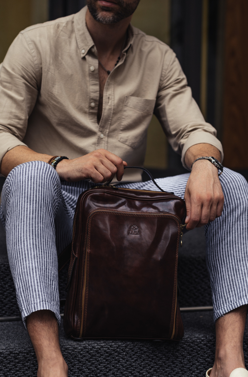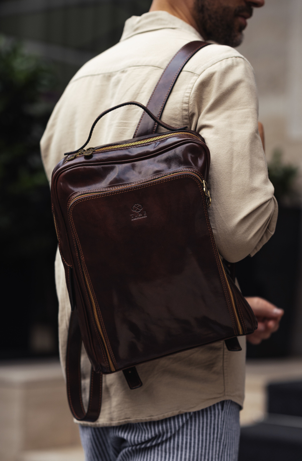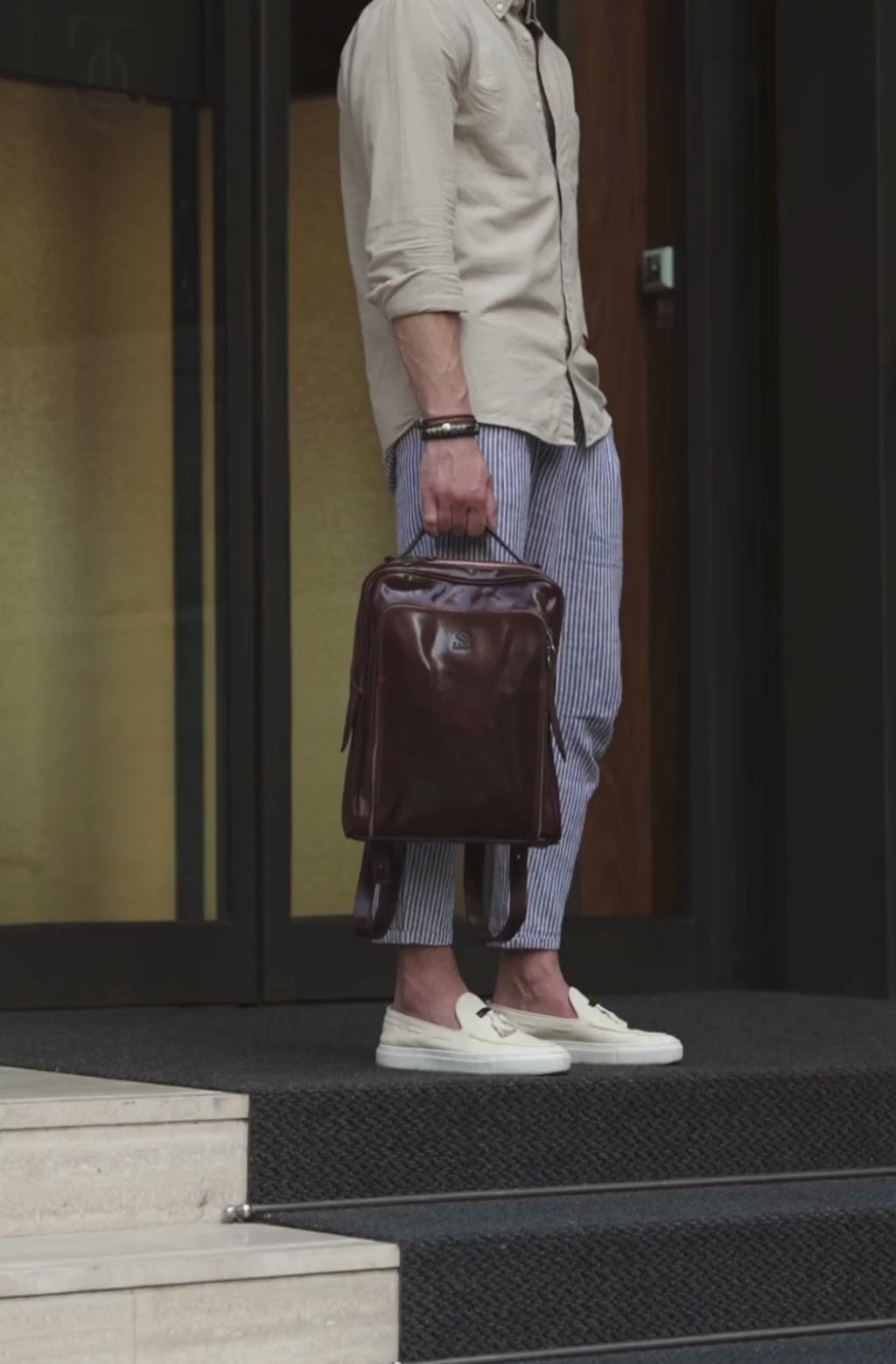 Plecak z pełnoziarnistej skóry licowej przypominający futurystyczny styl lat 70. Vintage'owe detale łączą się z czystymi, minimalistycznymi kształtami. Dla marzycieli, myślicieli, wiecznych wędrowców. Dla tych, którzy chcą się wyróżniać w ciszy.