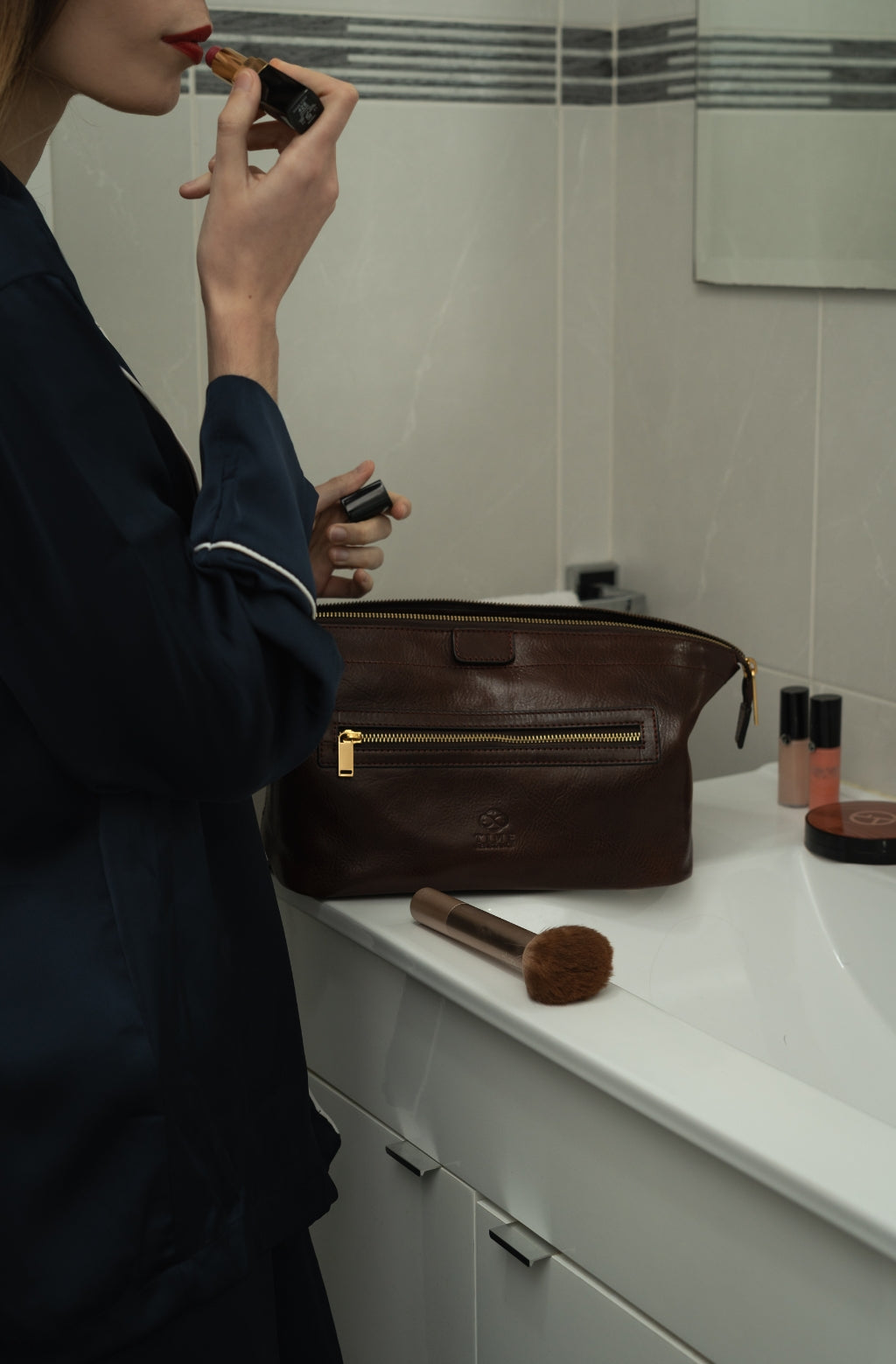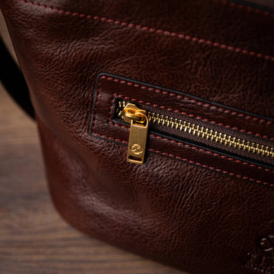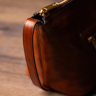 Time Resistance tworzy z włoskiej skóry licowej Vachetta: garbowanej roślinnie i barwionej ręcznie. Z czasem zyskuje szlachetną patynę.