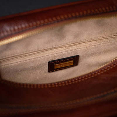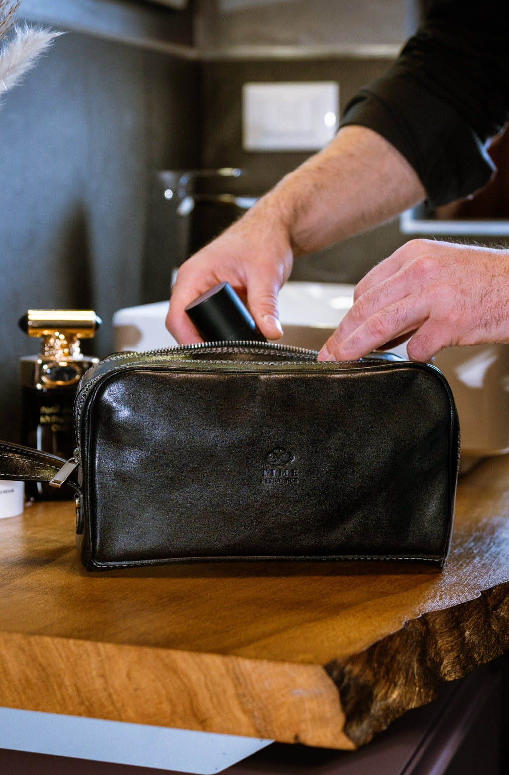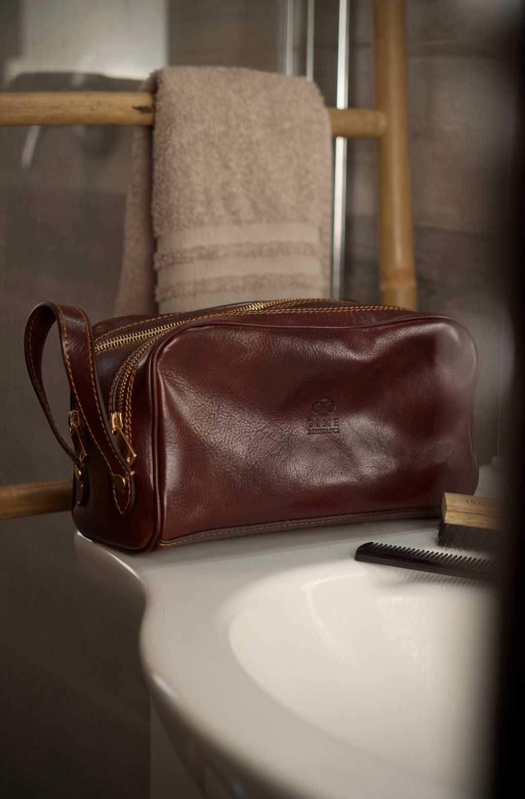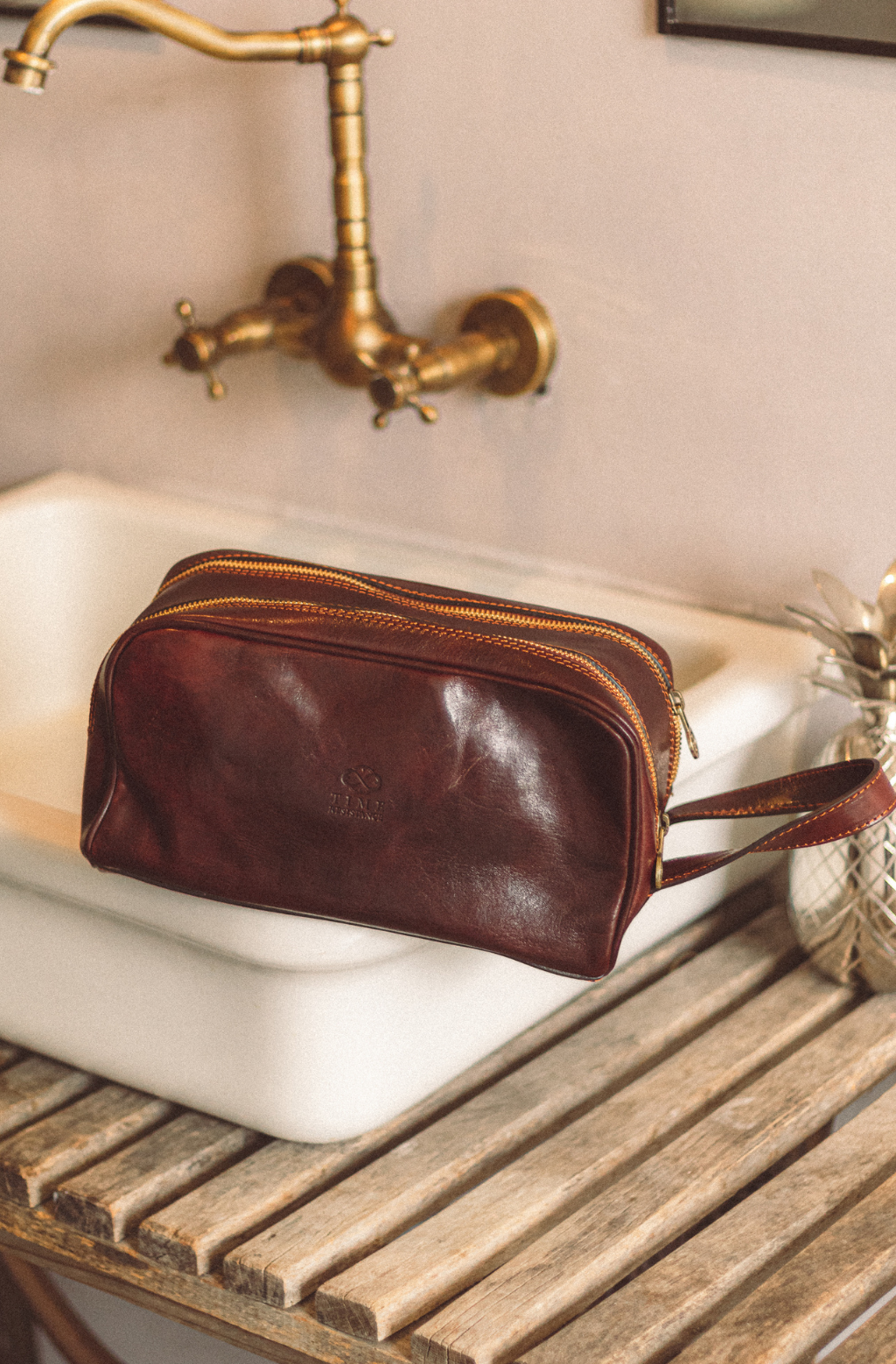 Time Resistance tworzy z włoskiej skóry licowej Vachetta: garbowanej roślinnie i barwionej ręcznie. Z czasem zyskuje szlachetną patynę.
