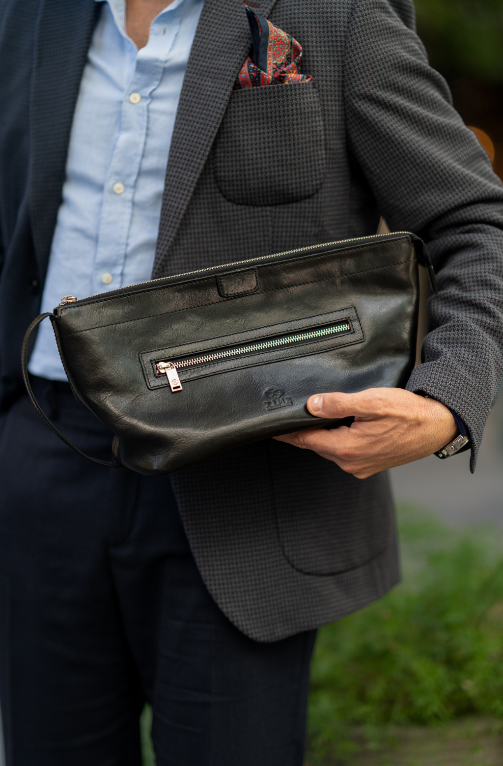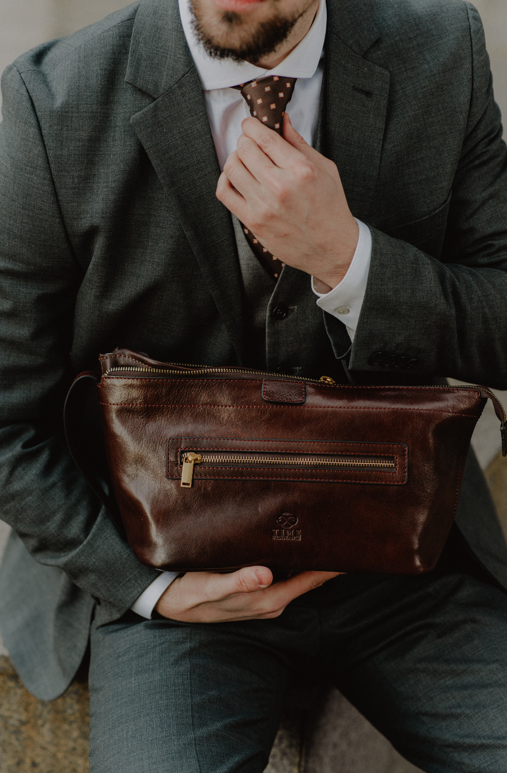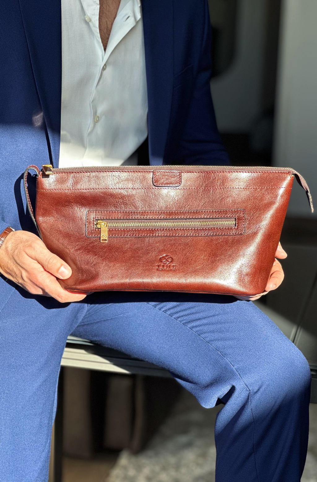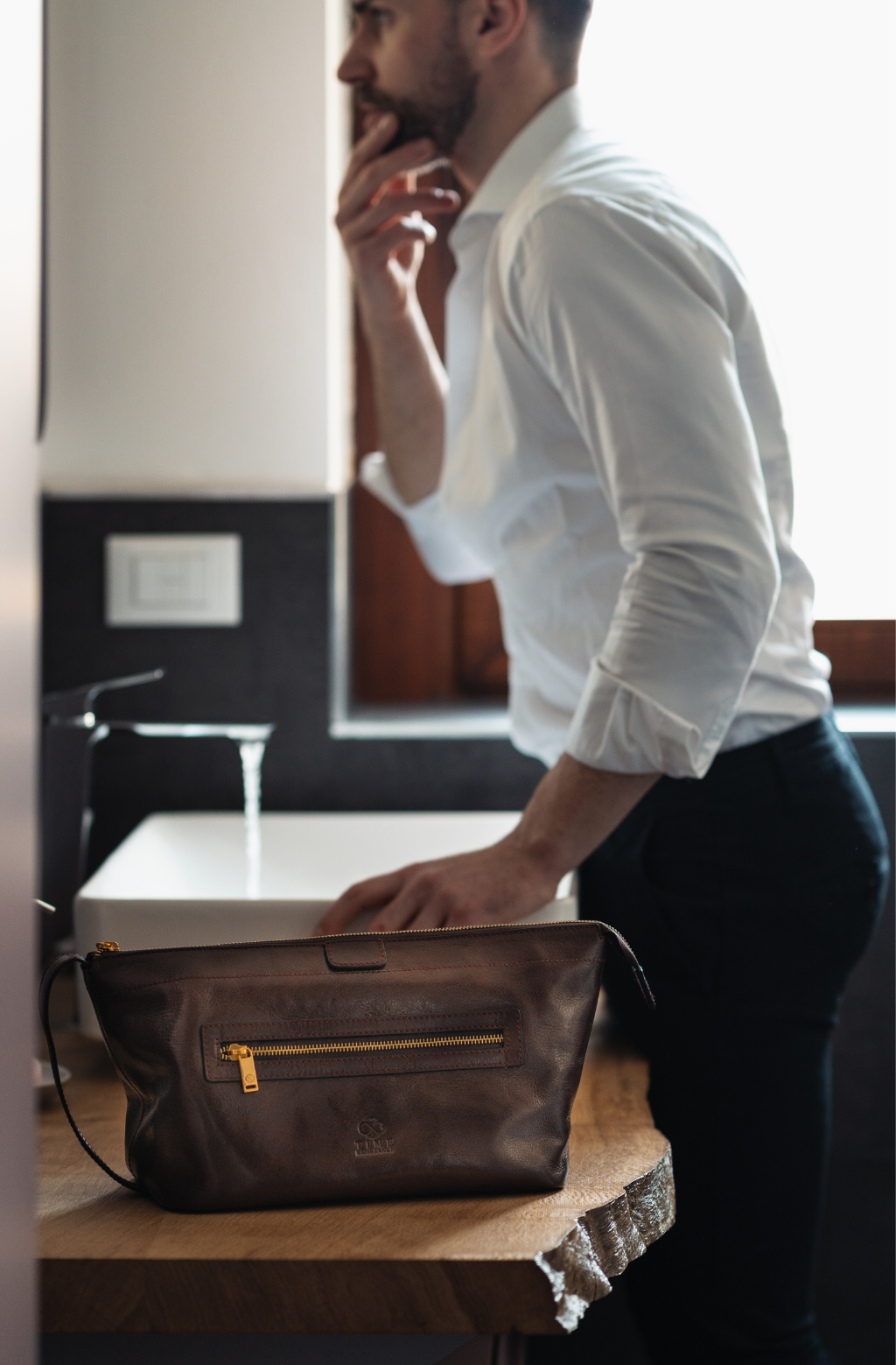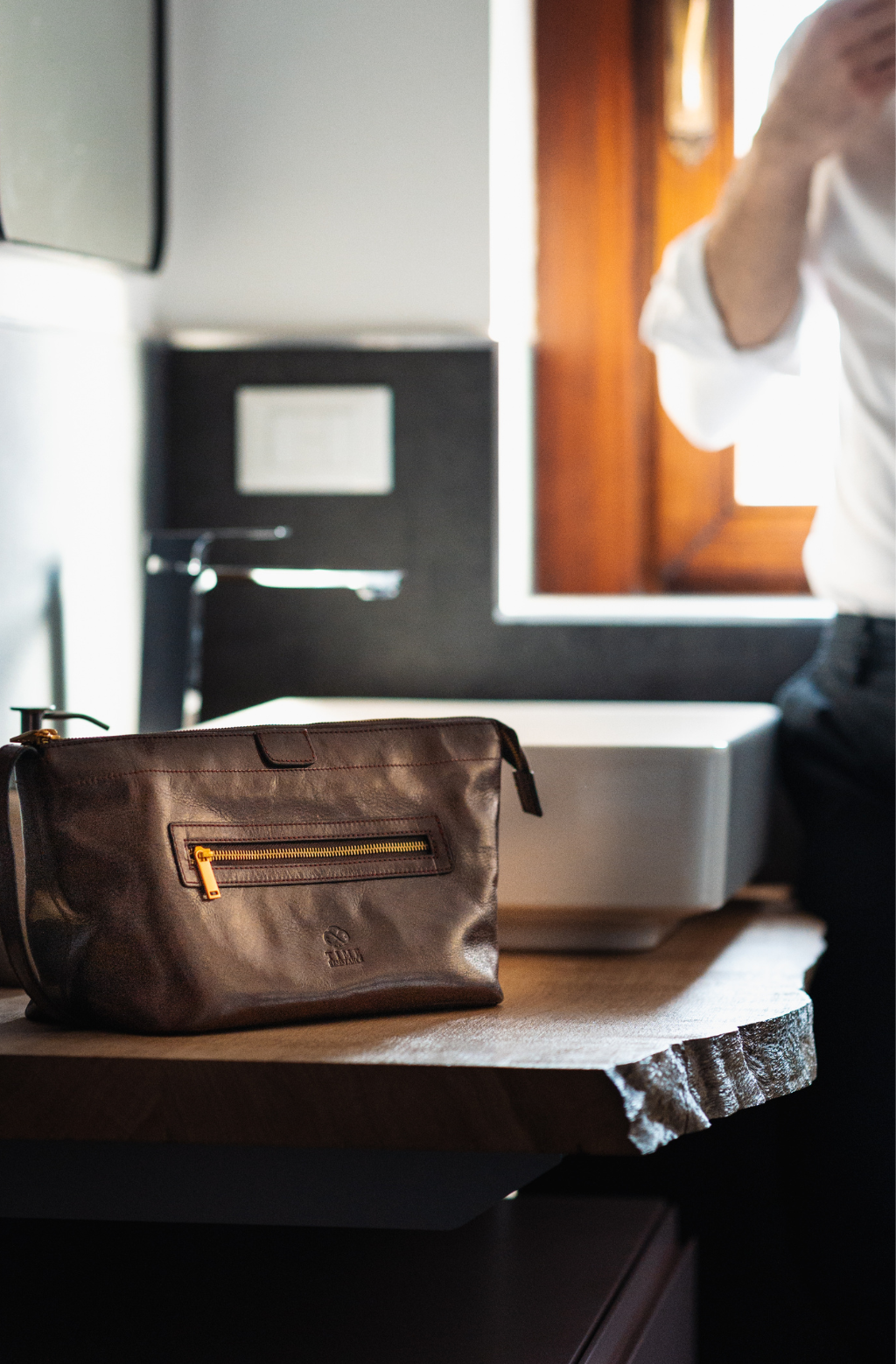 Time Resistance tworzy z włoskiej skóry licowej Vachetta: garbowanej roślinnie i barwionej ręcznie. Z czasem zyskuje szlachetną patynę.