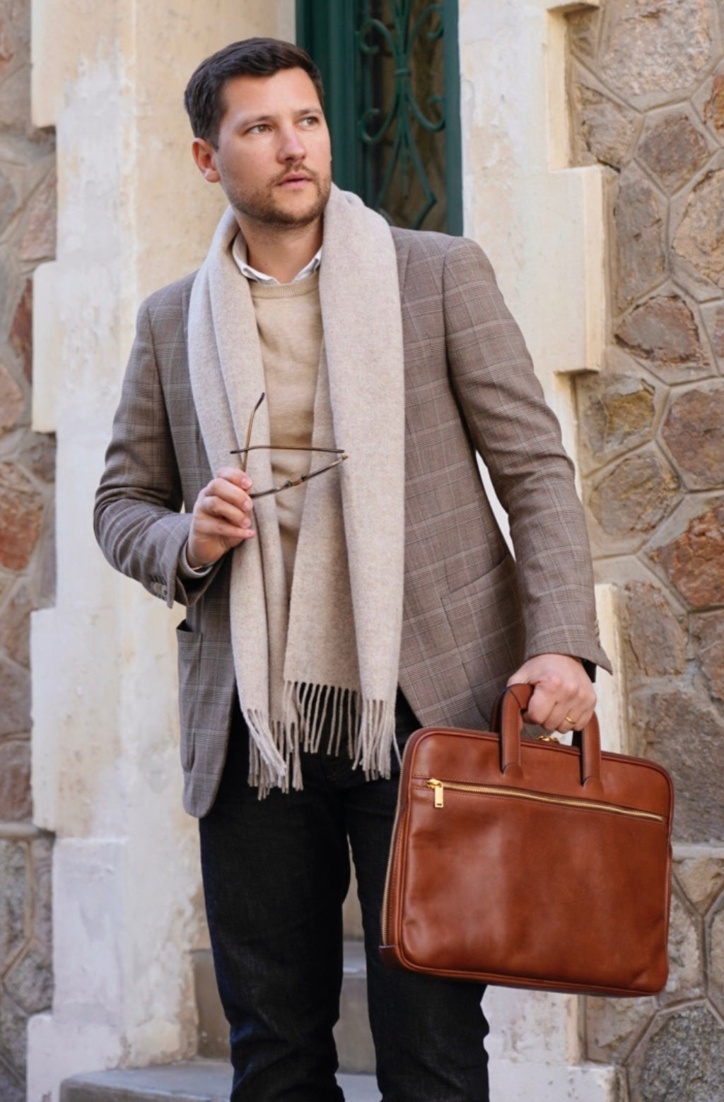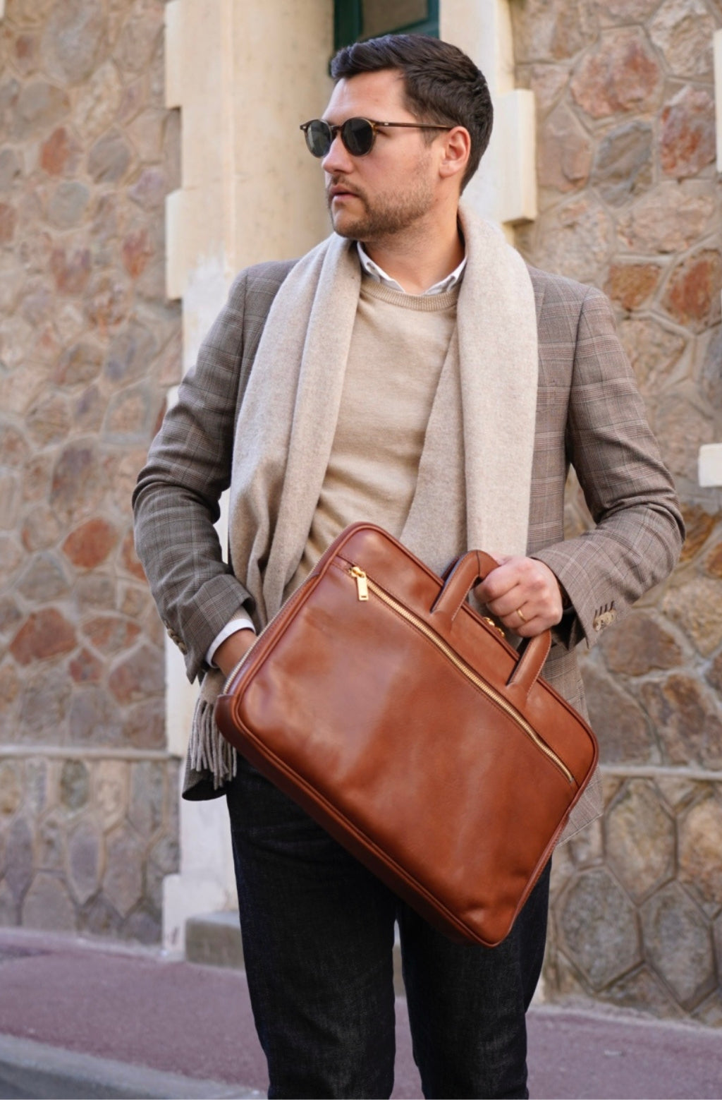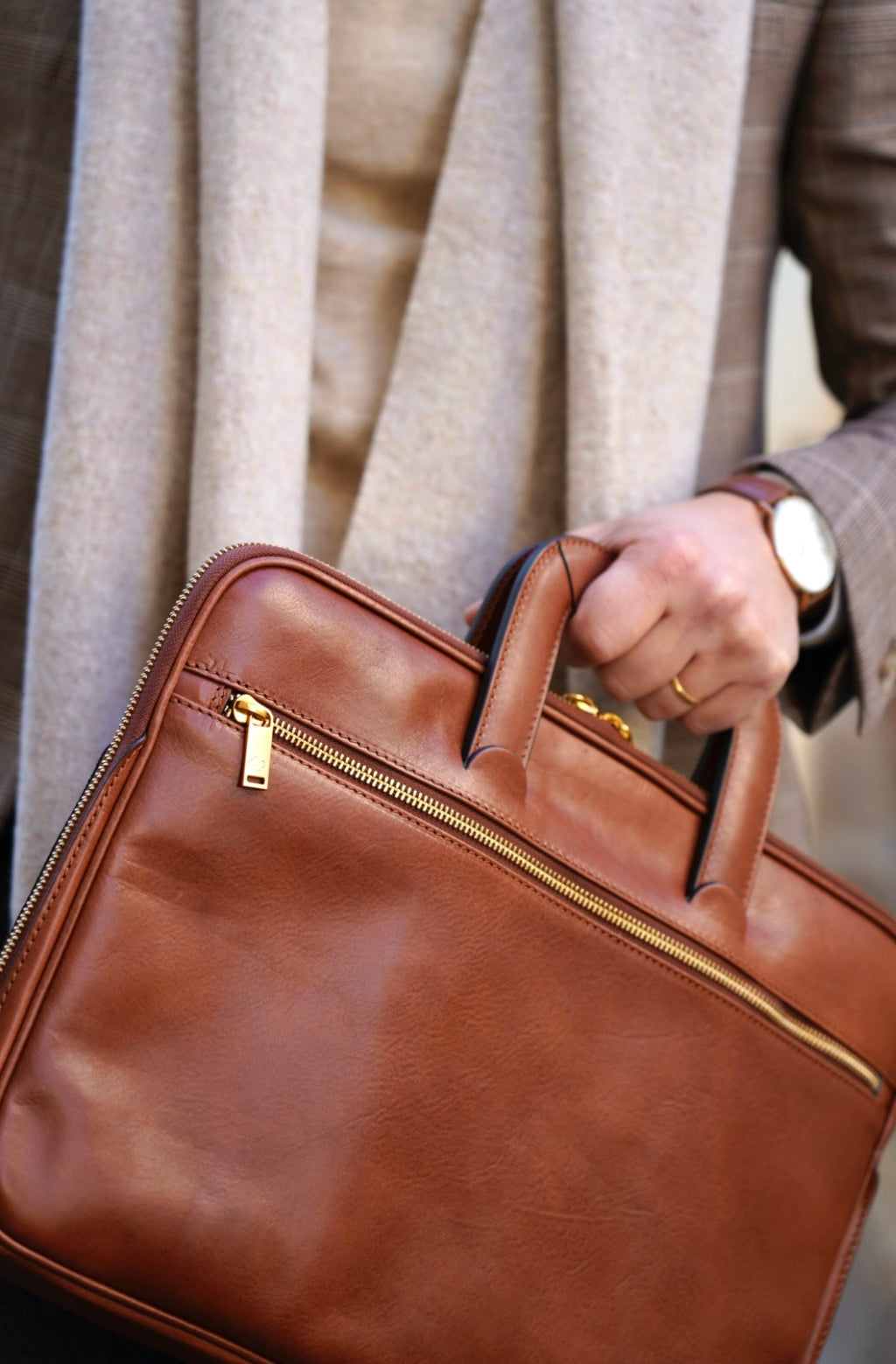 Teczka z pełnoziarnistej skóry licowej, która wyraża idealną harmonię między twardością a miękkością. Najwyższej jakości ręcznie barwiona skóra nadaje jej sentymentalny charakter, a linie nadają jej lekki, nowoczesny wygląd. Ponadczasowa i aktualna. Męska i kobieca. Miejska praktyczność z charyzmą.