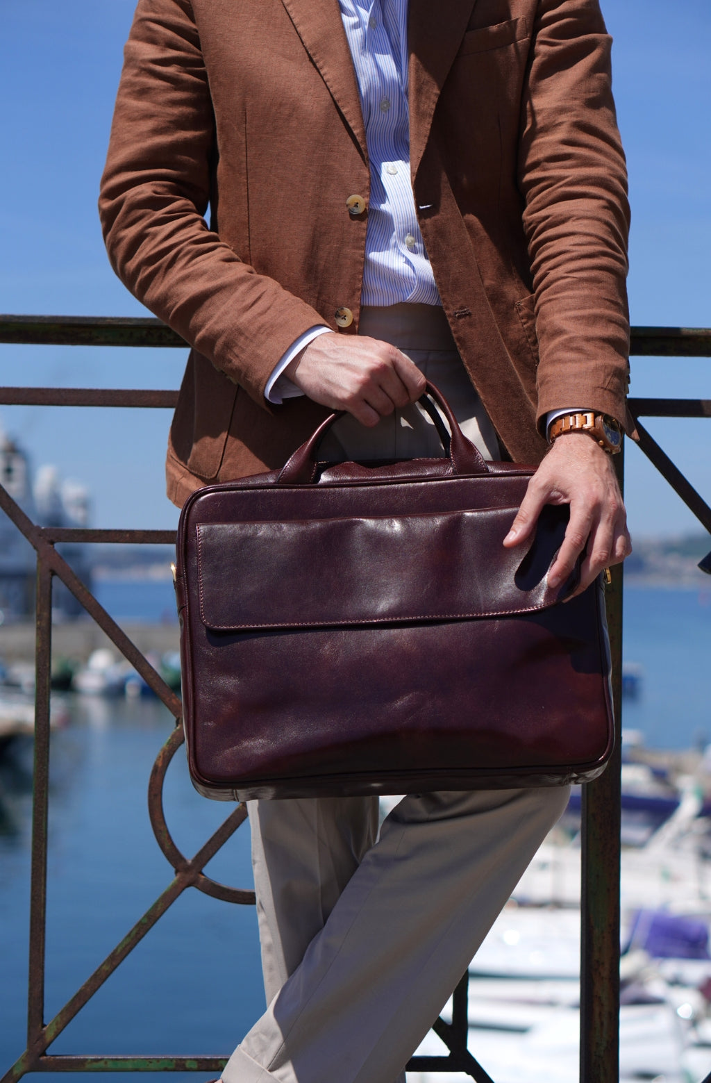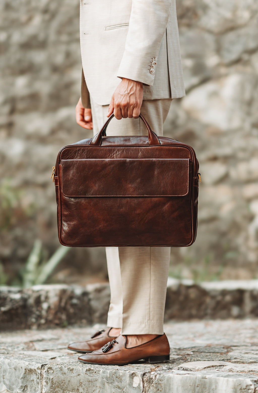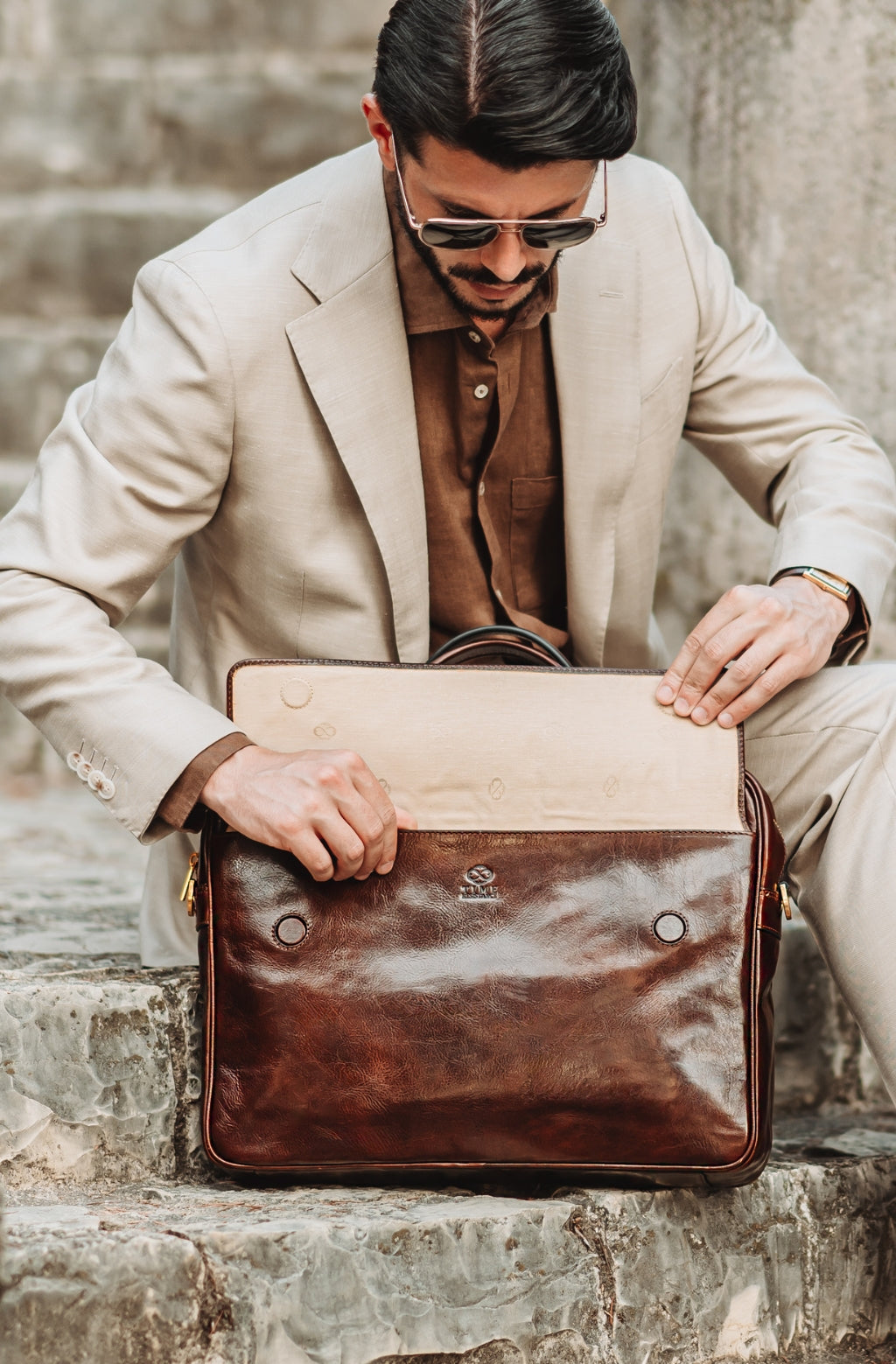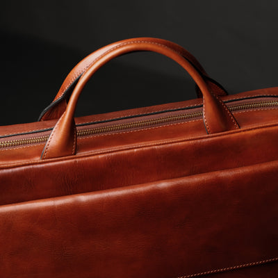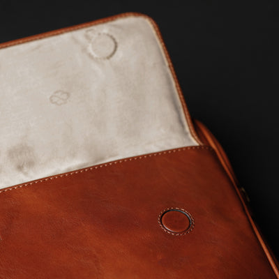 Time Resistance tworzy z włoskiej skóry licowej Vachetta: garbowanej roślinnie i barwionej ręcznie. Z czasem zyskuje szlachetną patynę.