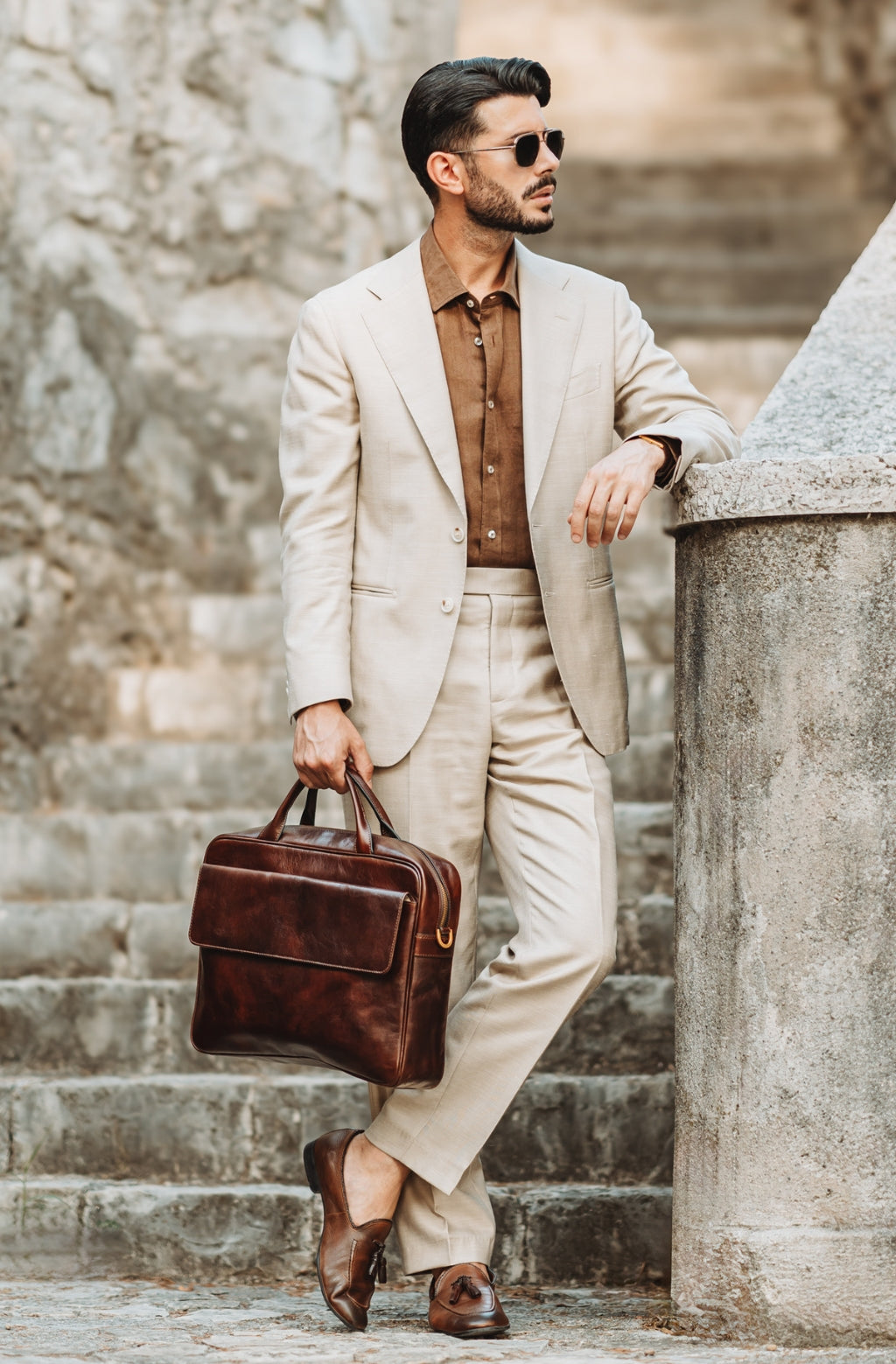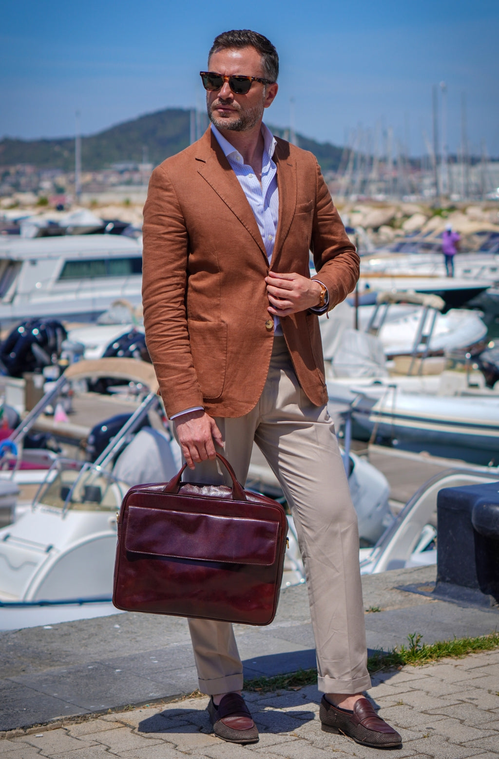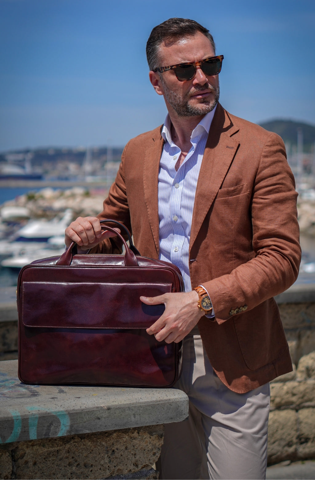 Time Resistance tworzy z włoskiej skóry licowej Vachetta: garbowanej roślinnie i barwionej ręcznie. Z czasem zyskuje szlachetną patynę.