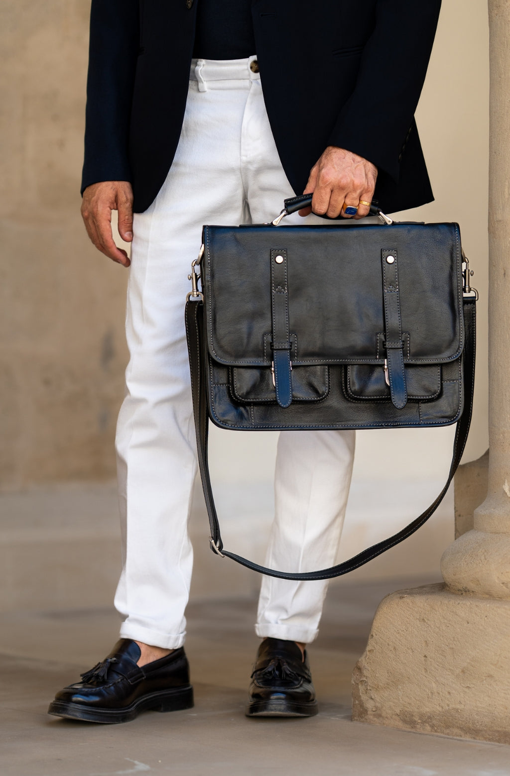 Time Resistance tworzy z włoskiej skóry licowej Vachetta: garbowanej roślinnie i barwionej ręcznie. Z czasem zyskuje szlachetną patynę.