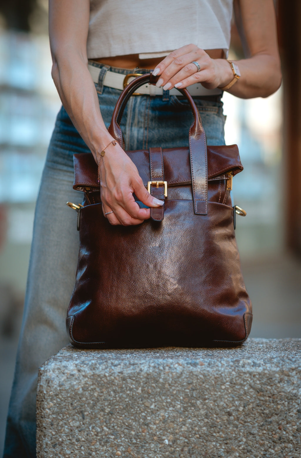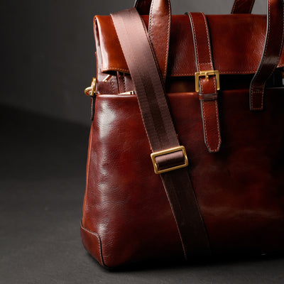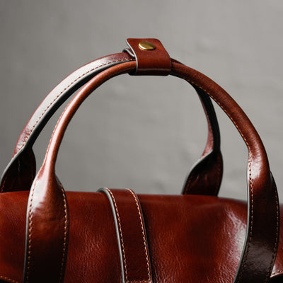 Time Resistance tworzy z włoskiej skóry licowej Vachetta: garbowanej roślinnie i barwionej ręcznie. Z czasem zyskuje szlachetną patynę.