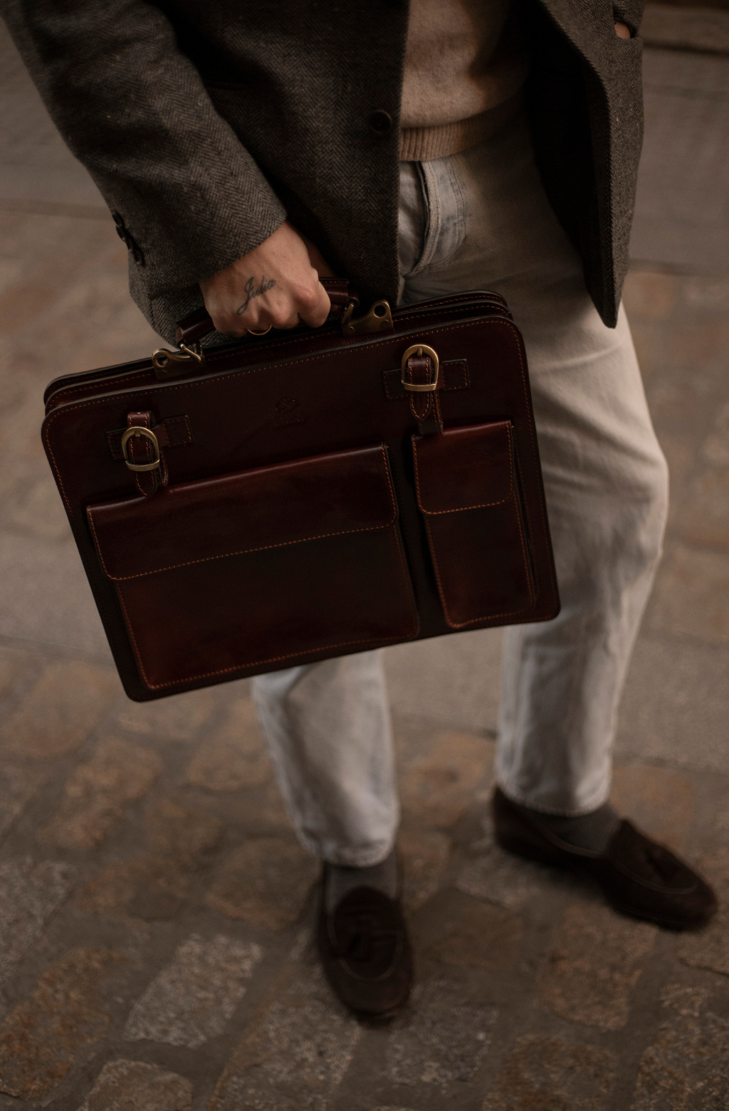 Time Resistance tworzy z włoskiej skóry licowej Vachetta: garbowanej roślinnie i barwionej ręcznie. Z czasem zyskuje szlachetną patynę.
