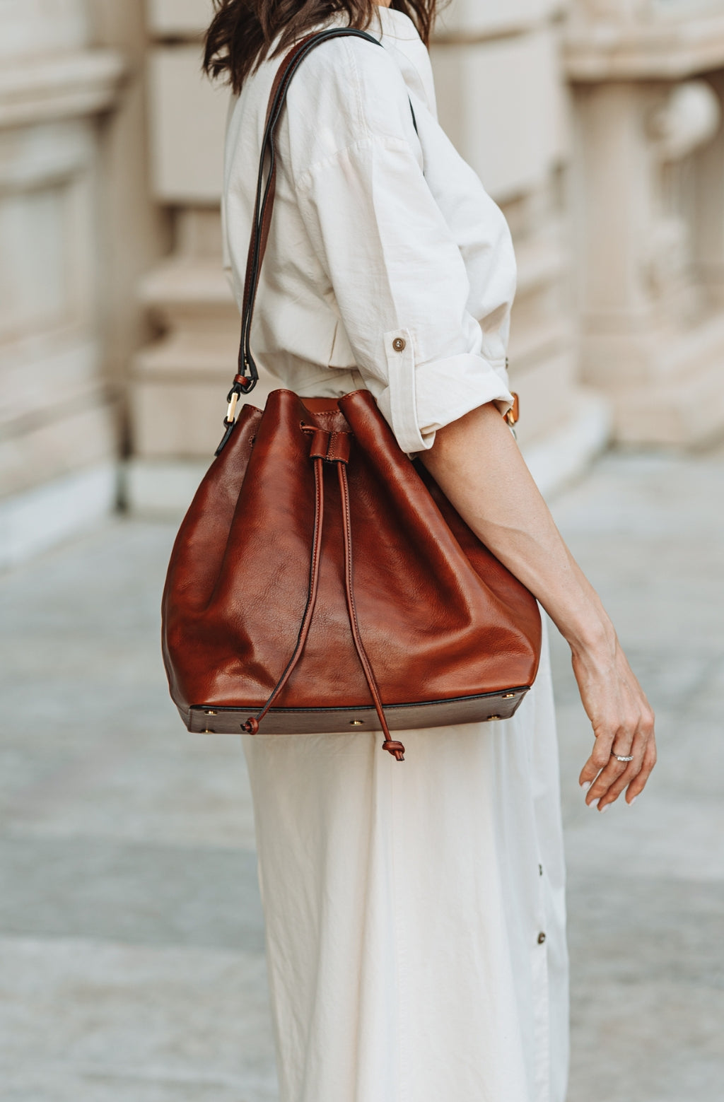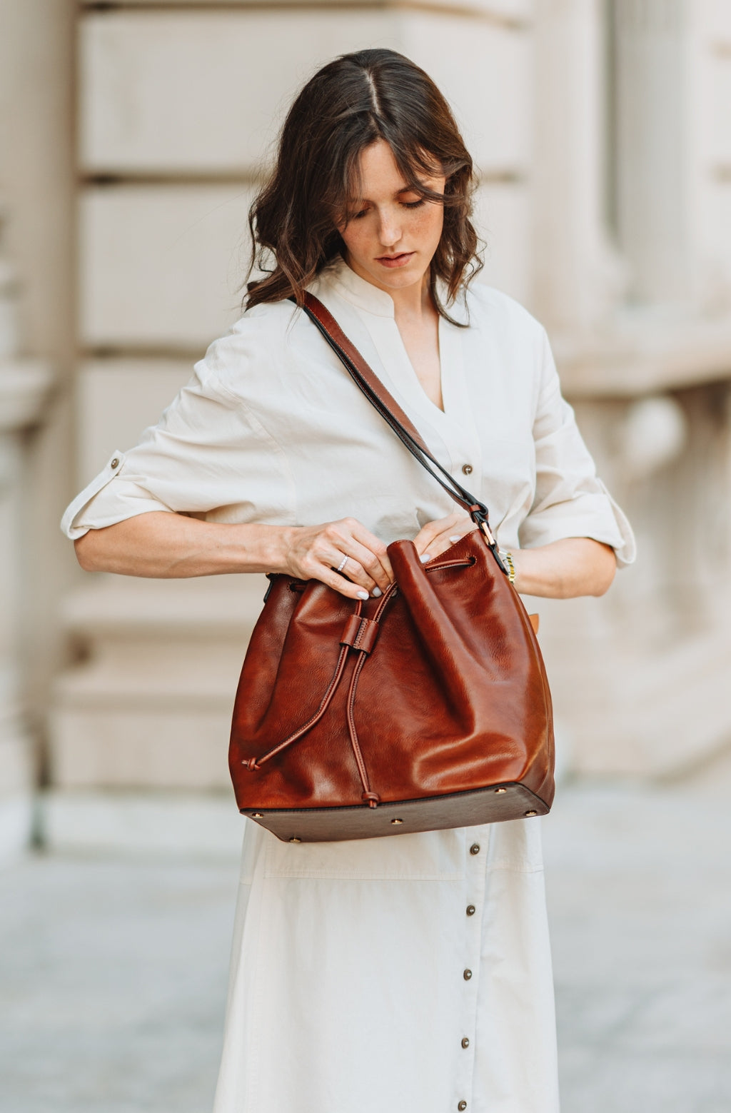 Time Resistance tworzy z włoskiej skóry licowej Vachetta: garbowanej roślinnie i barwionej ręcznie. Z czasem zyskuje szlachetną patynę.