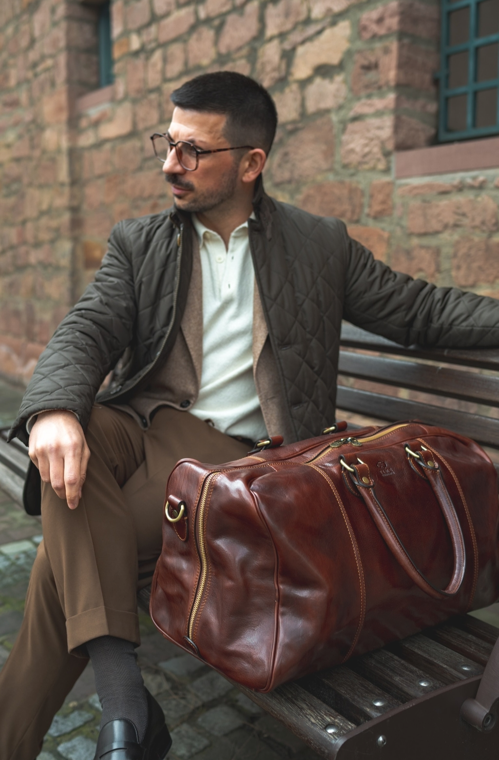Ta torba podróżna z pełnoziarnistej skóry chętnie będzie towarzyszyć Państwu we wszystkich podróżach, zarówno służbowych, jak i prywatnych. Im częściej będą Państwo zabierać tego przyjaciela w podróż, tym lepiej będzie wyglądał.