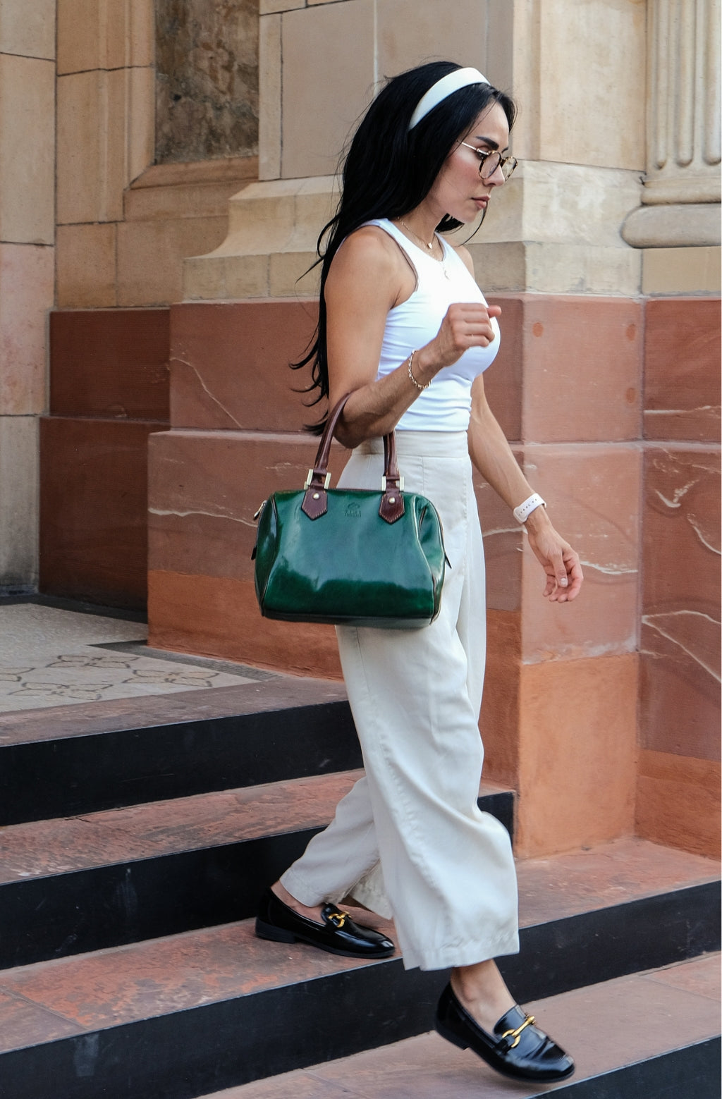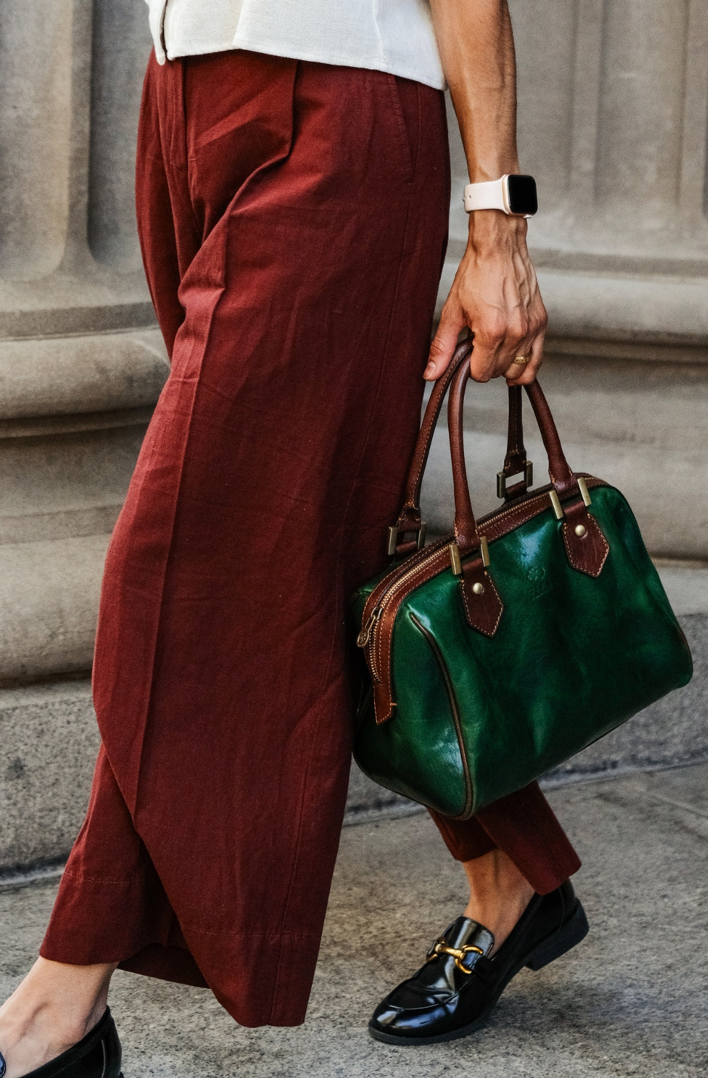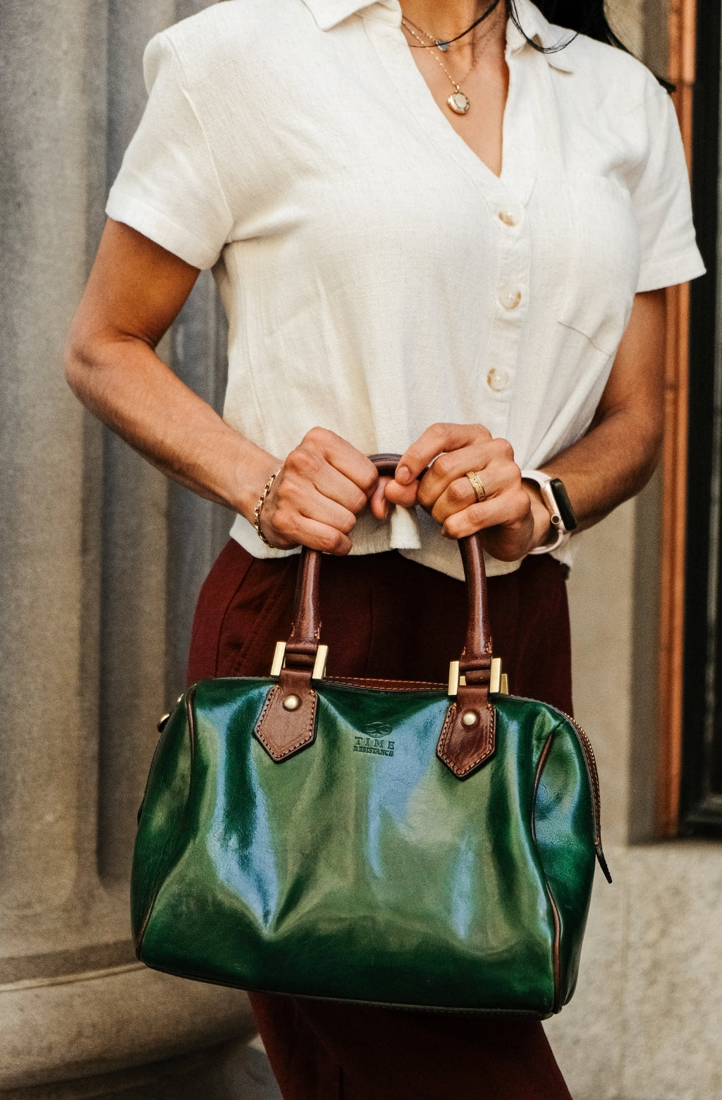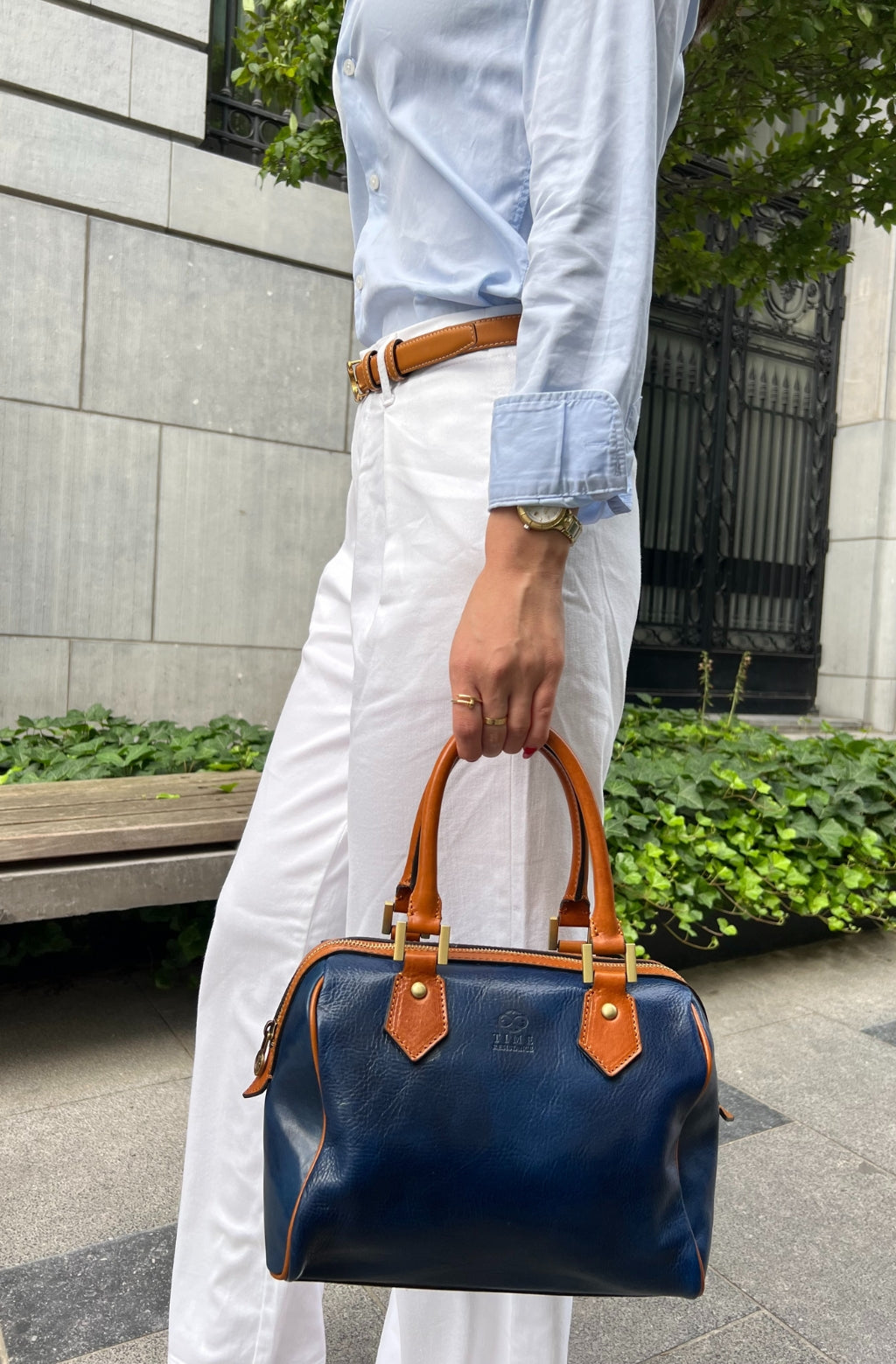Time Resistance tworzy z włoskiej skóry licowej Vachetta: garbowanej roślinnie i barwionej ręcznie. Z czasem zyskuje szlachetną patynę.