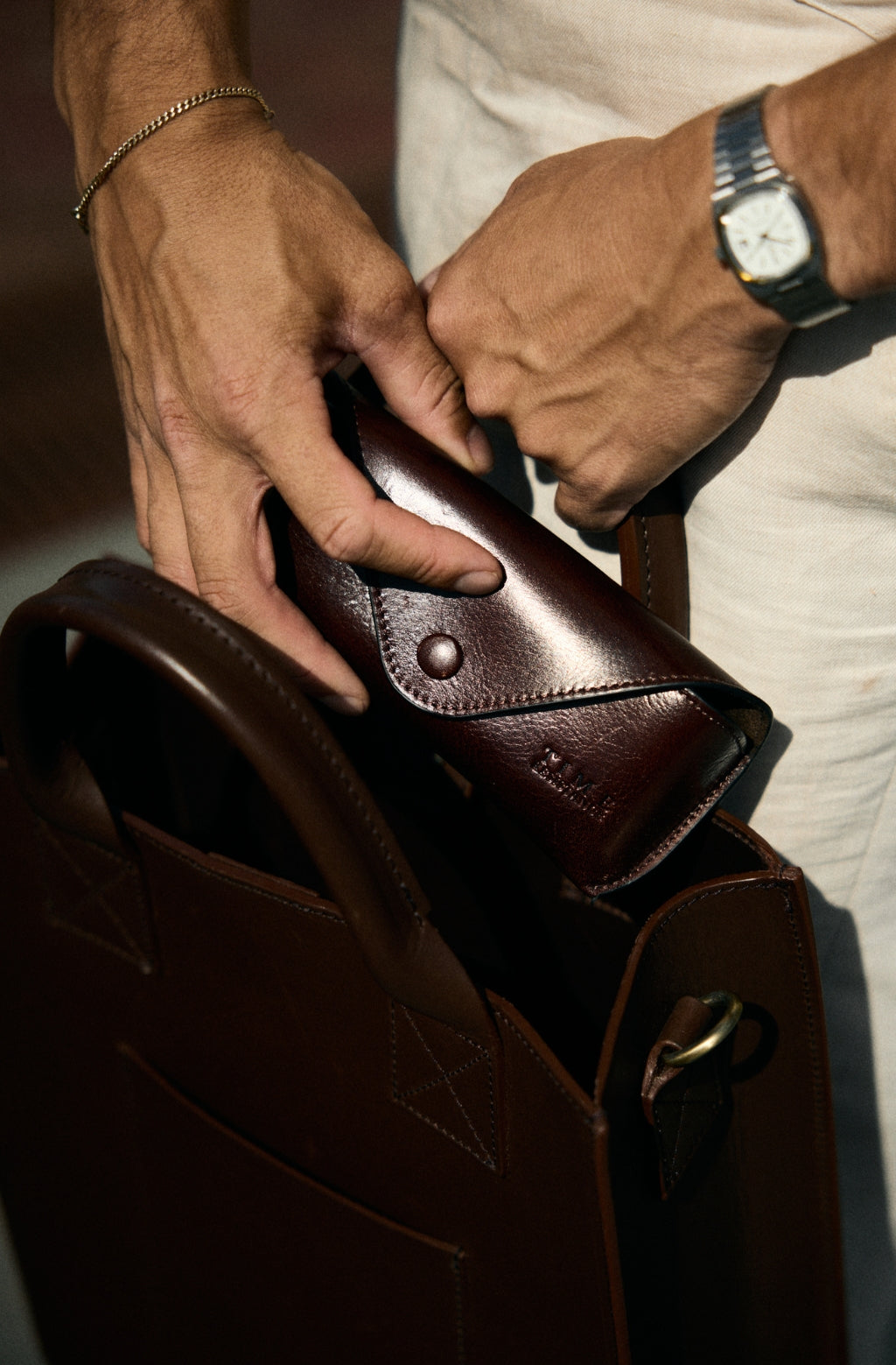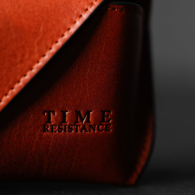 Time Resistance tworzy z włoskiej skóry licowej Vachetta: garbowanej roślinnie i barwionej ręcznie. Z czasem zyskuje szlachetną patynę.