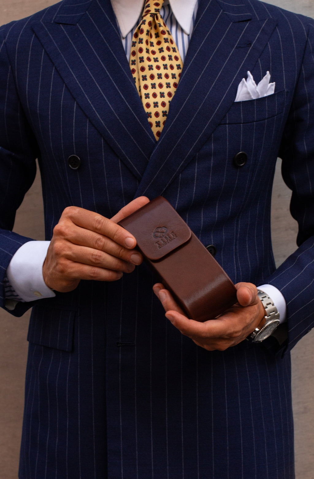 Każda torba, wykonana z najwyższą precyzją z najlepszej włoskiej skóry, jest świadectwem naszego zaangażowania w jakość i tradycję. Zaprojektowana z minimalistyczną estetyką i magnetycznym zamknięciem ułatwiającym dostęp, torba ta emanuje wyrafinowaniem i praktycznością w równym stopniu. Ręcznie barwiona przy użyciu technik garbowania roślinnego skóra charakteryzuje się bogatą, naturalną patyną, która z wiekiem staje się coraz piękniejsza. Nasze logo jest dyskretnie wytłoczone na przedniej klapie, co stanowi subtelne nawiązanie do kunsztu wykonania. Podnieś jakość swoich okularów dzięki temu luksusowemu akcesorium, w którym styl i funkcjonalność łączą się w idealnej harmonii.