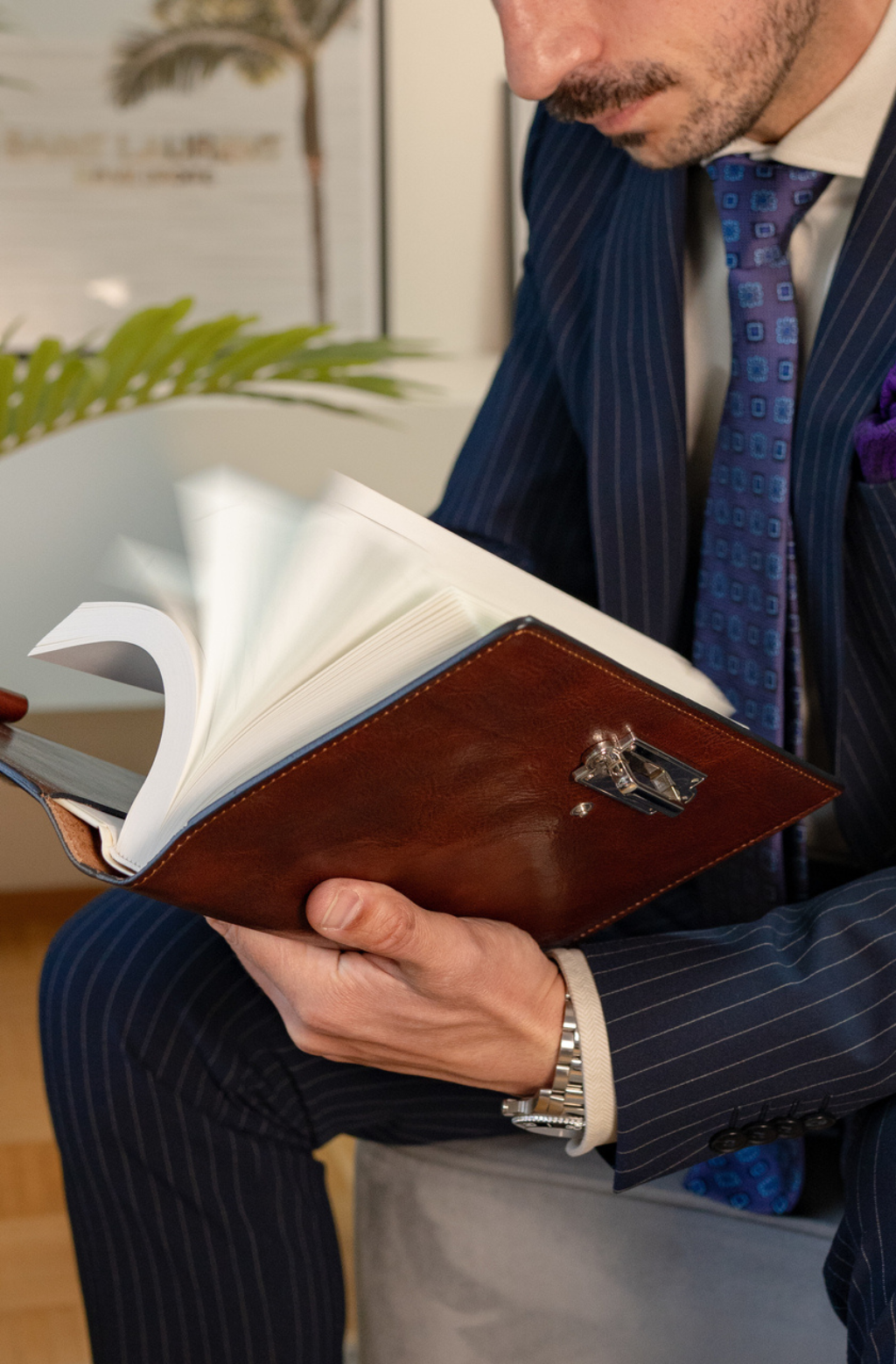 Skórzana okładka na notes o klasycznym wzornictwie doskonale nadaje się do pracy, podróży, spotkań, prezentacji i nie tylko. Idealny jako wyjątkowy dziennik na co dzień. Wspaniały prezent dla bliskich i uroczy dziennik dla samego siebie. Łatwy i prosty do wyjęcia i zastąpienia ulubionym notesem.