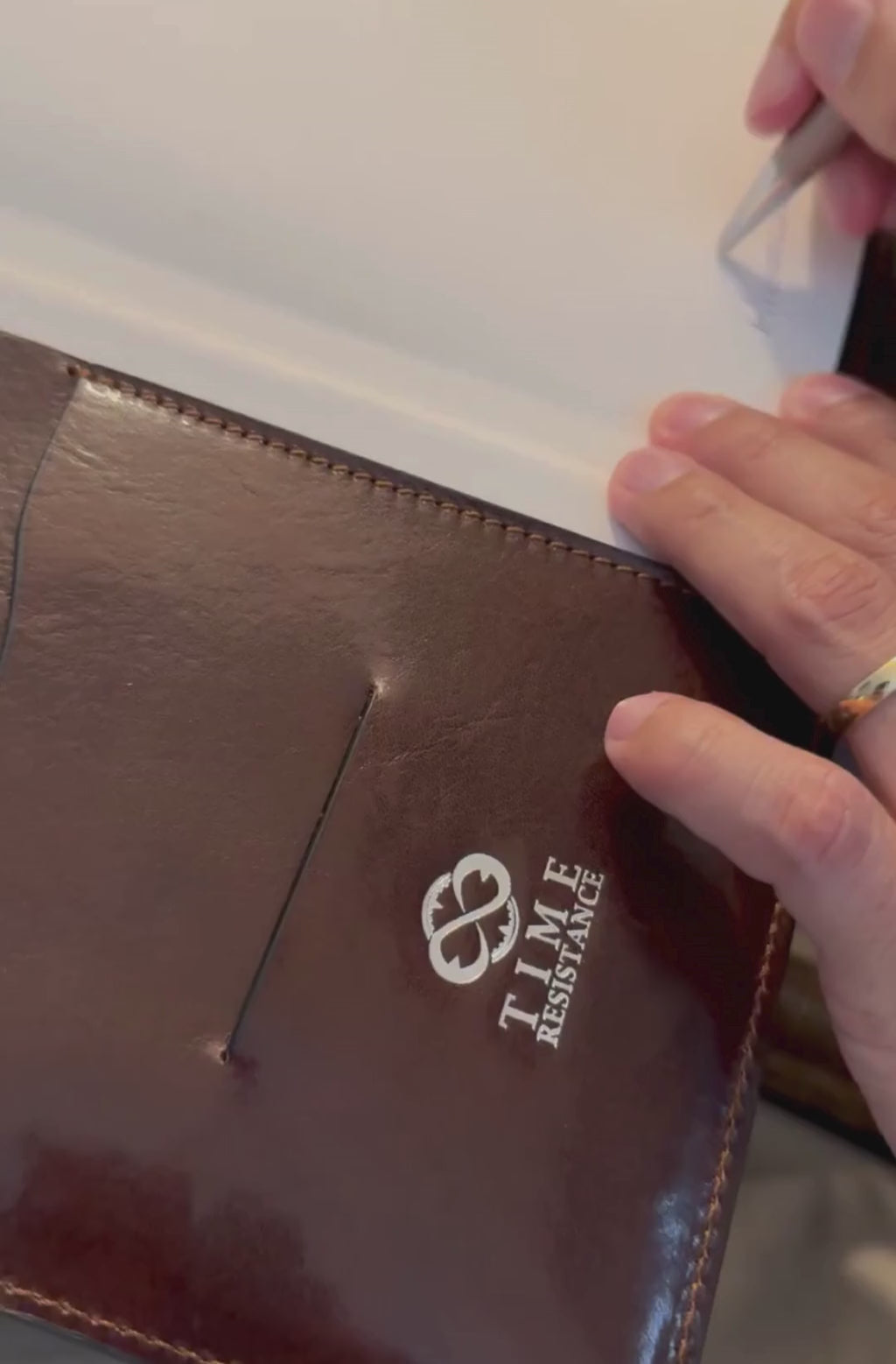 W zestawie z notesem w twardej oprawie od Time Resistance