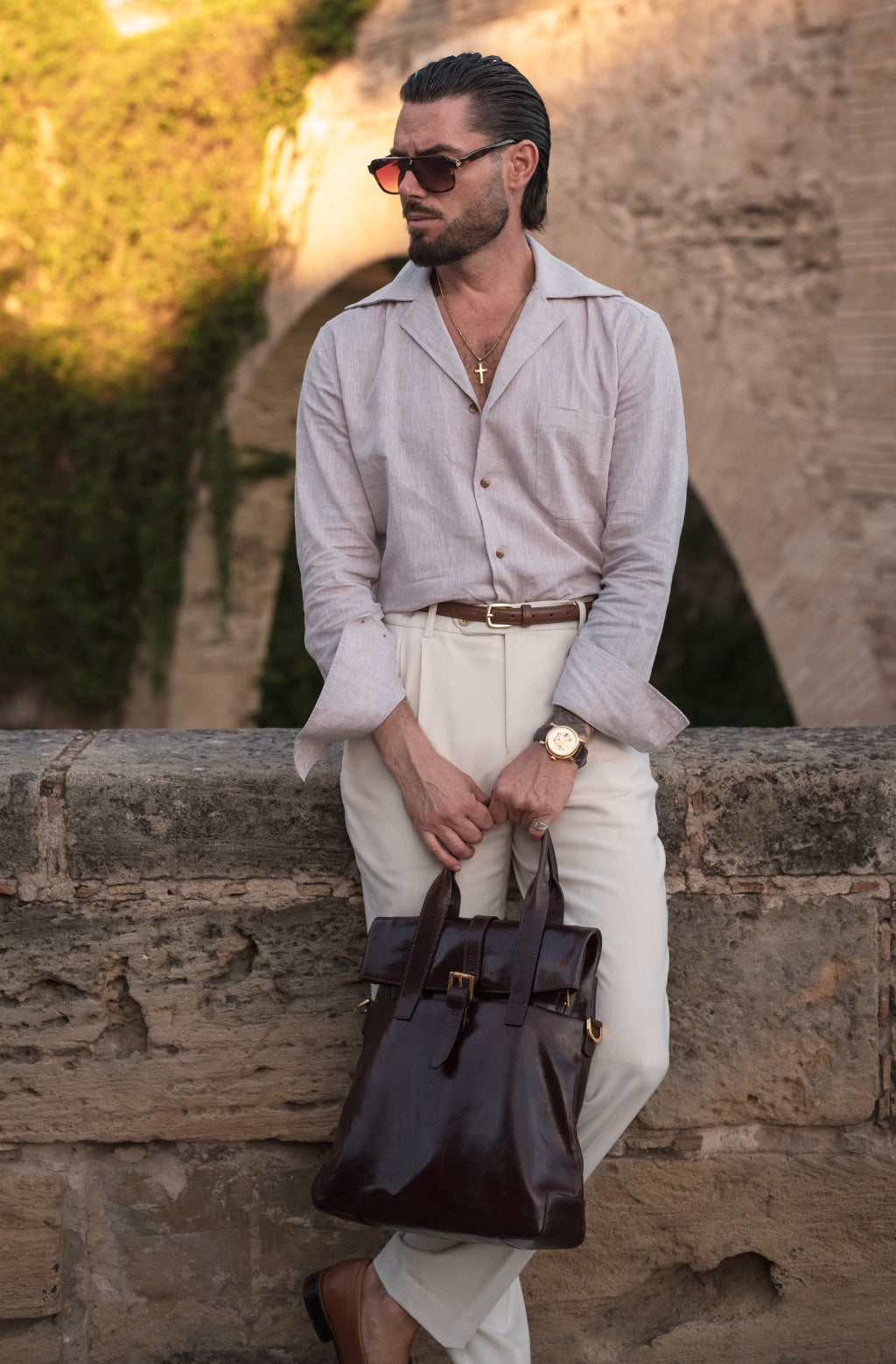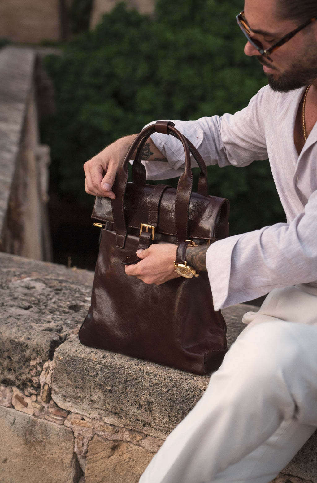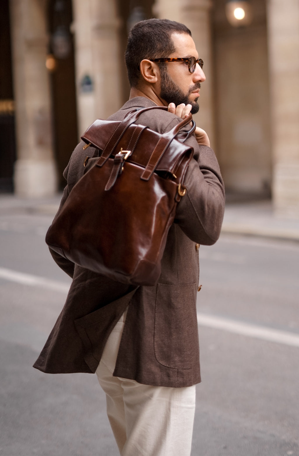 Dla osób ceniących wszechstronność i elegancję, torba The Awakening z łatwością przekształca się z eleganckiego plecaka w elegancką torbę na ramię. Wykonana z pełnoziarnistej skóry licowej, łączy w sobie praktyczność z ponadczasowym urokiem, z łatwością przenosząc wszystkie niezbędne rzeczy. Starannie zaprojektowana z myślą o płynnych przejściach, porusza się tak samo wdzięcznie jak Państwo. The Awakening to coś więcej niż tylko torba – to wyraz pewności siebie i wyrafinowania.