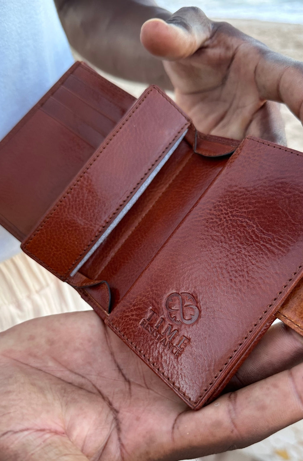 Time Resistance tworzy z włoskiej skóry licowej Vachetta: garbowanej roślinnie i barwionej ręcznie. Z czasem zyskuje szlachetną patynę.